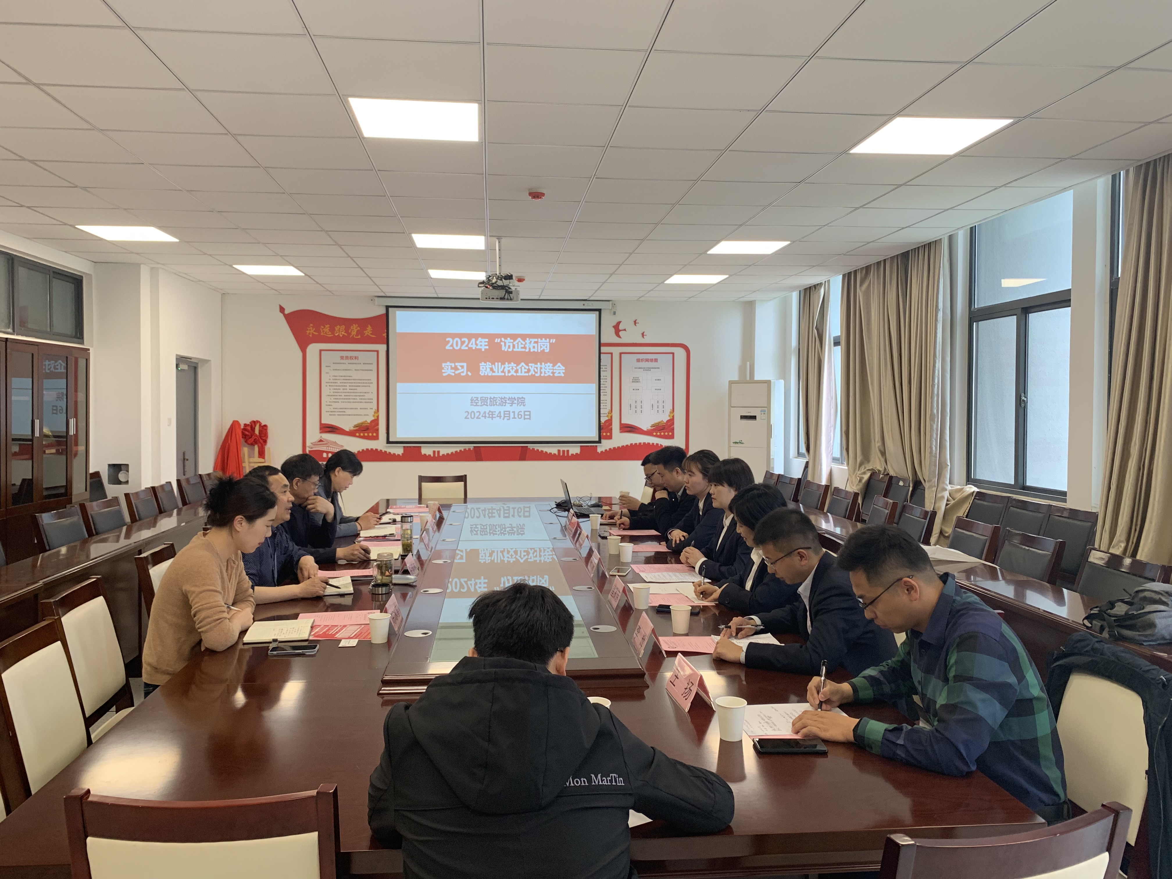 为深入贯彻《关于开展全国高校书记校长访企拓岗促就业专项行动的通知》要求,提升我院学生就业质量。4月16日上午,安徽满辰科技集团股份有限公司、安徽辰元物业管理有限公司、安徽邻几便利店有限公司、安徽阳光信通电子科技有限公司四家单位到访世界杯体育官方网站进行就业洽谈,学院党总支书记梅亚松、院长赵红、副院长陈继林,以及负责学院实习就业的相关老师参加本次会议,会议由陈继林主持。