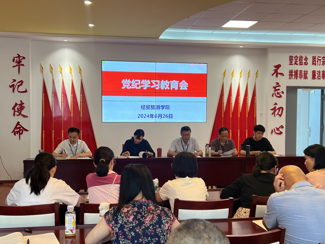 为持续深入开展党纪学习教育,落实校党委理论学习中心组会议精神,扎实推进学期末各项重点工作,6月26日下午,世界杯体育官方网站于党性体验馆召开党纪学习教育会和期末重点工作推进会,学院党政、全体教职工参加会议,会议由副院长陈继林主持。