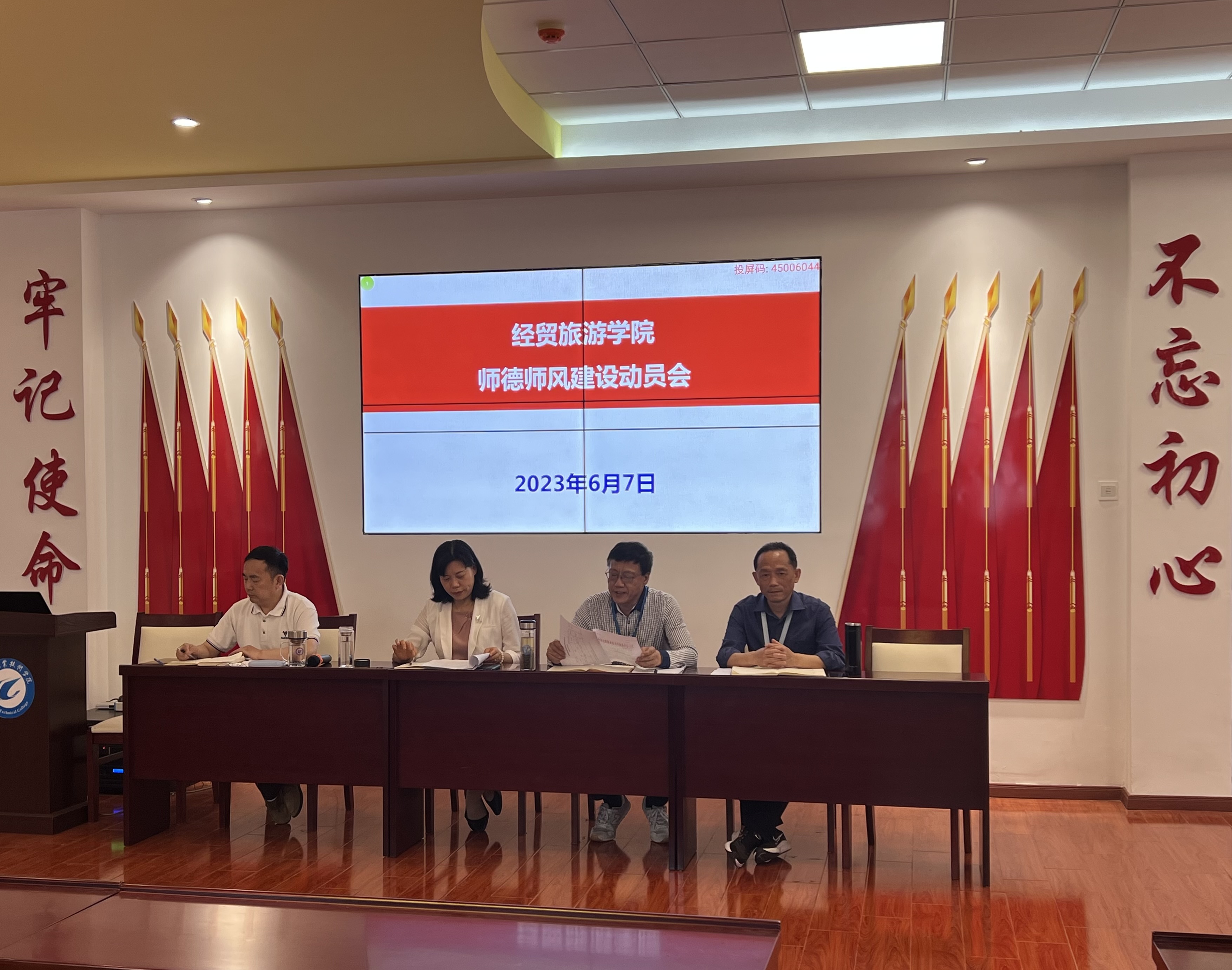 6月7日下午,世界杯体育官方网站在党性体验馆召开五月份教职工政治理论学习会议暨师德师风建设动员会。学院党政、全体教职工参加会议,会议由副院长陈继林主持。