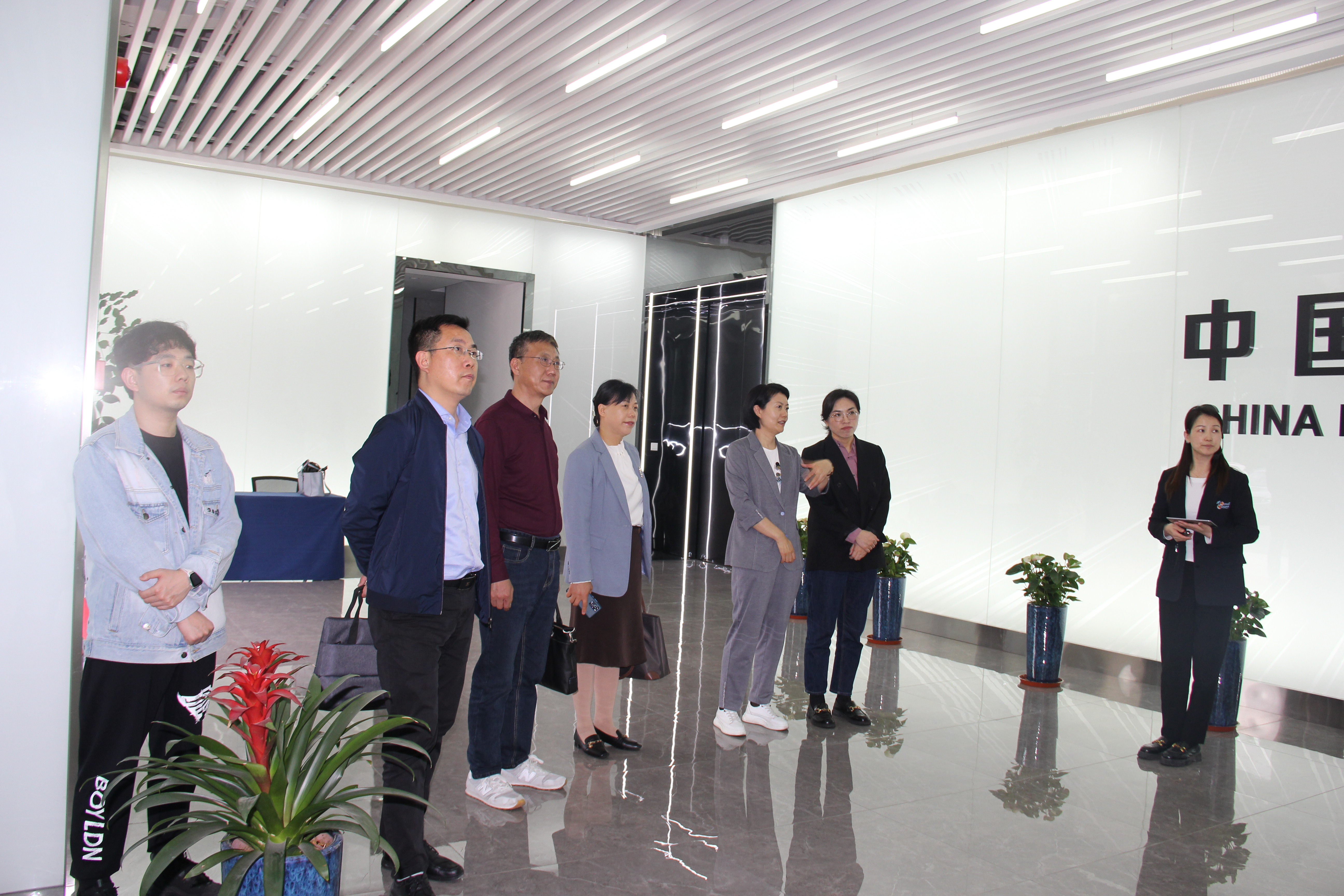调研中,我校一行来到中国网谷展厅,在许波等带领和讲解下,大家观看了企业光影宣传片并参观展厅长廊,感受中国网谷前沿科技的梦幻魅力、充分认识其“一谷三基地”产业承载平台的战略布局和发展前景。