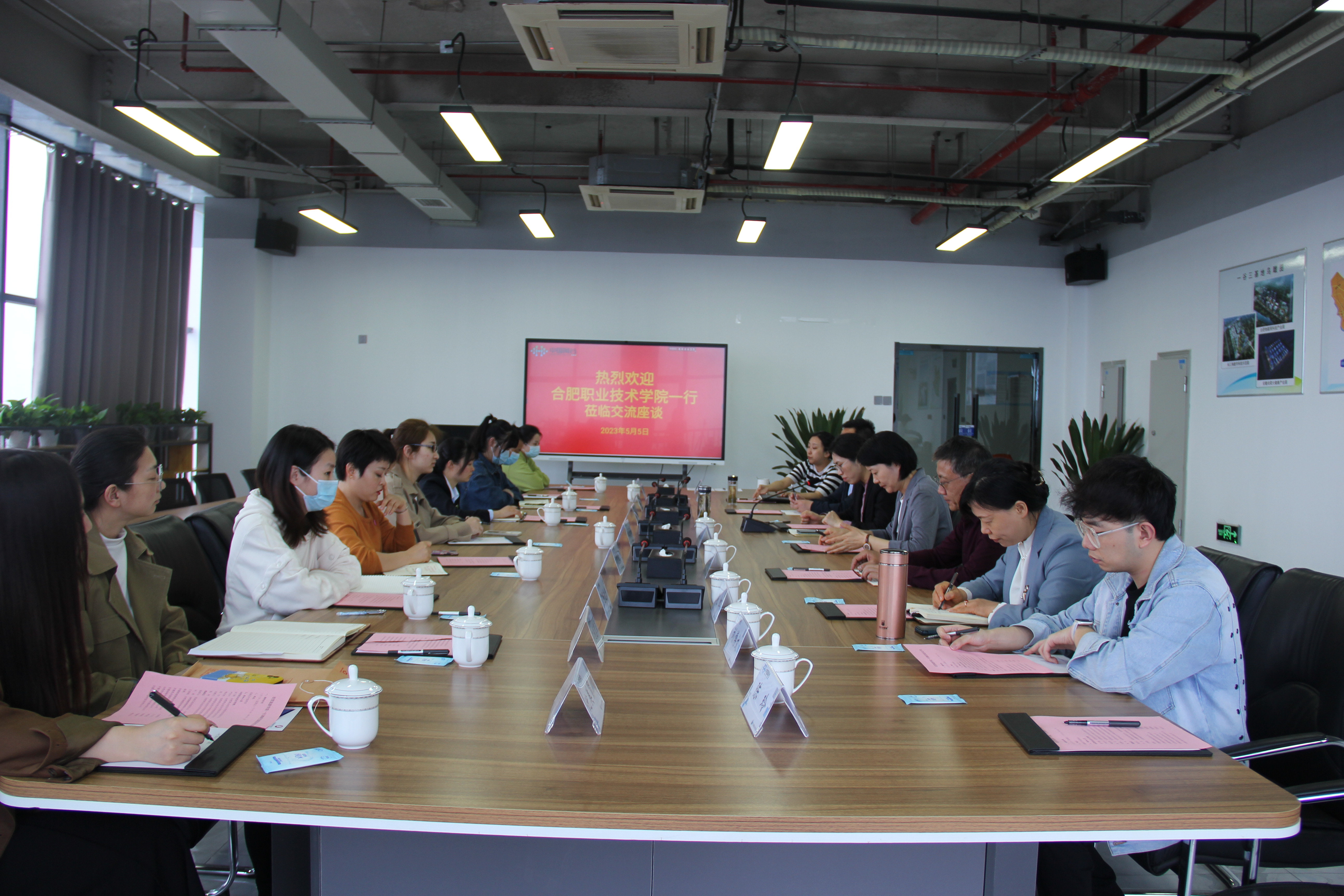 随后,张彩云主持双方专题座谈会,中国网谷相关入驻企业代表出席会议。交流发言中,许波向与会人员介绍了中国网谷园区的发展现状、产业定位、配套建设等。他指出,中国网谷是合肥市重点打造的“五谷丰登”项目之一,建设发展呈现出“一谷三基地”的产业布局,即以合肥物联网科技产业园为平台核心,以长三角数字科技示范园为智造核心,以尚荣医疗产业园为应用核心,三基地联动建设,共同促进产业生态集聚发展。目前,企业发展势头强劲,对人才需求量大。