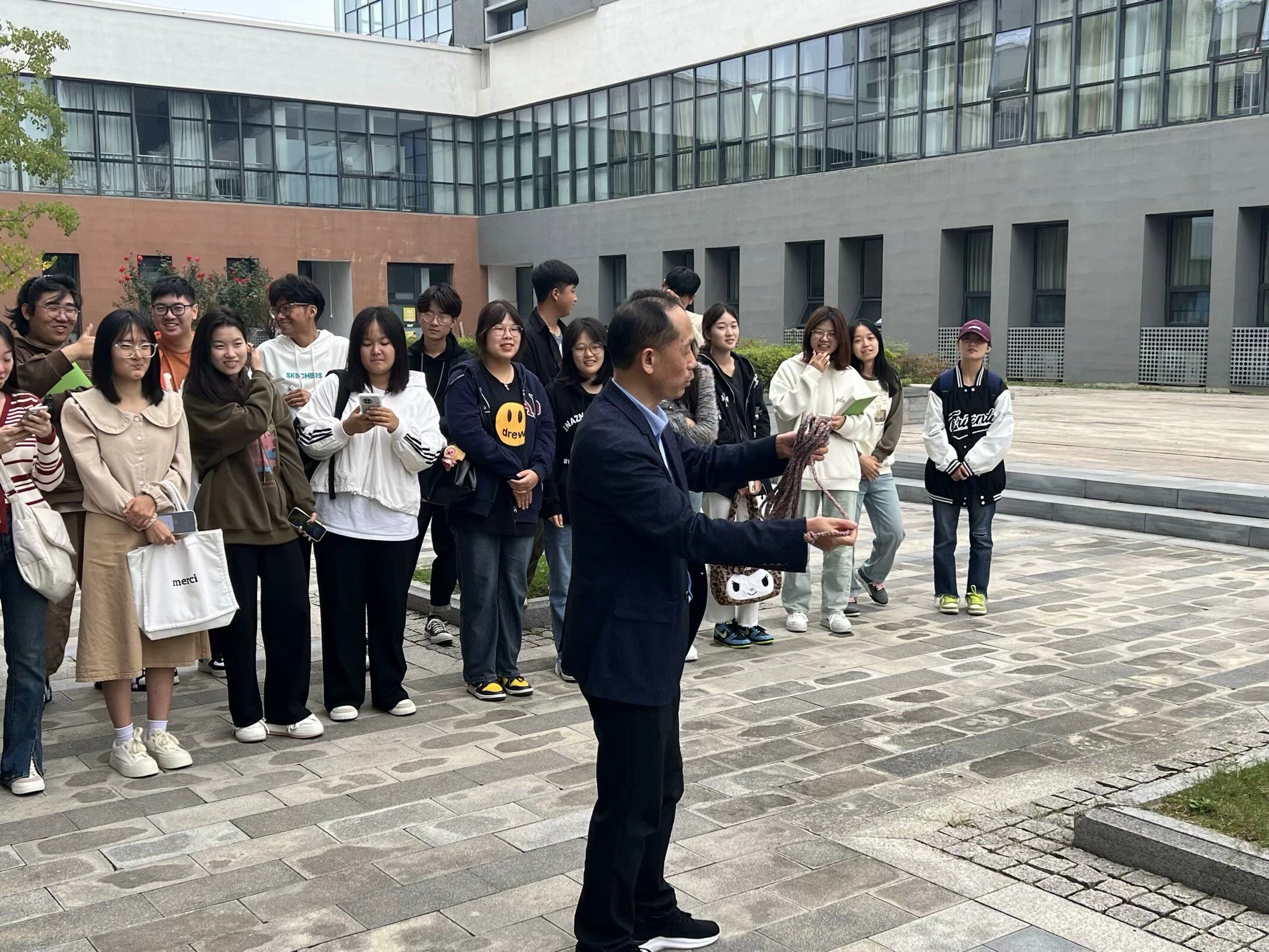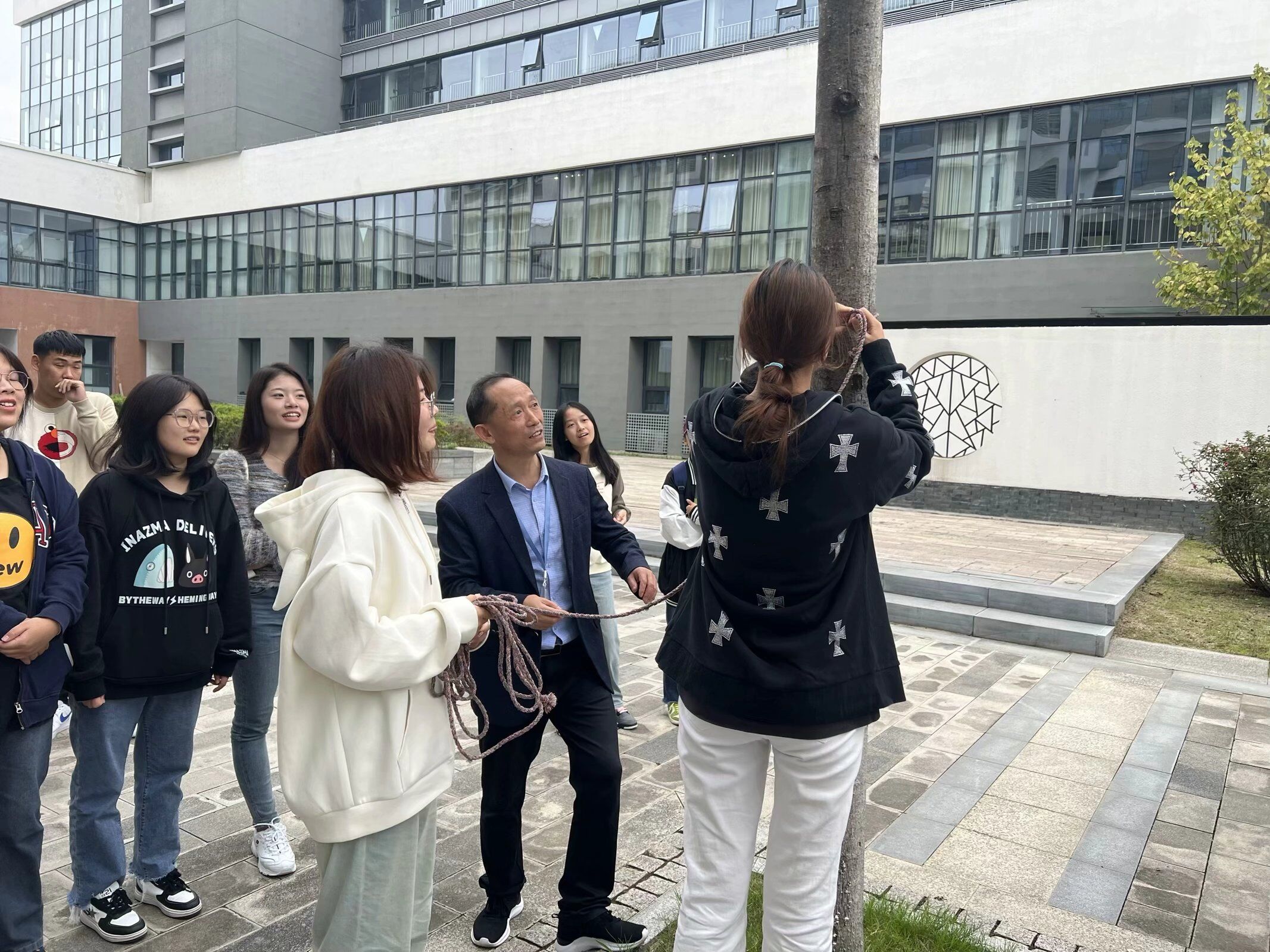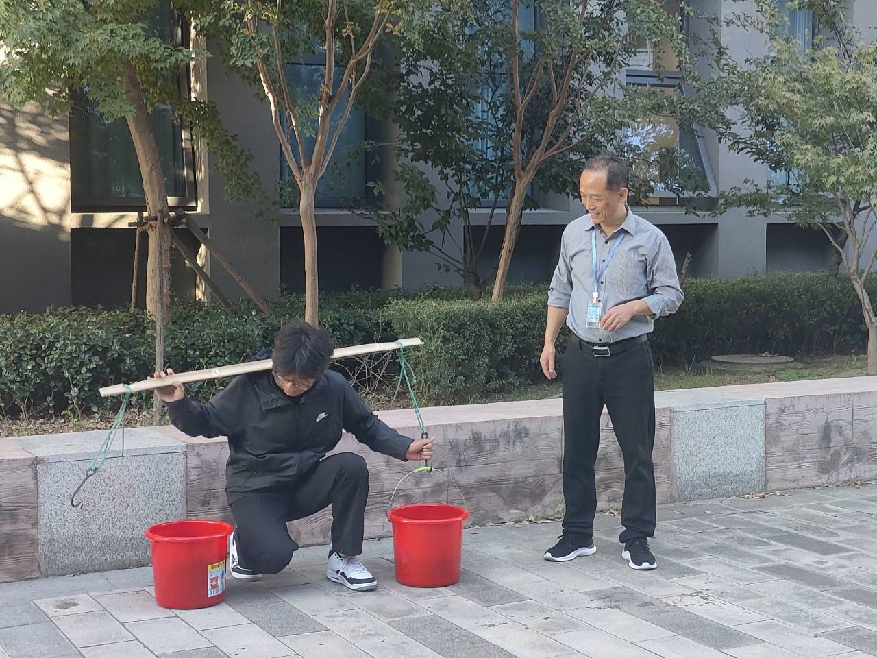 劳动教育是培养德智体美劳全面发展人才的关键环节,是全面育人的重要内容。世界杯体育官方网站持续深化“三全育人”综合改革,落实“五育并举”,充分发挥劳动育人功能,教育引导学生崇尚劳动、尊重劳动、热爱劳动。为此,学院对23级学生的《劳动教育》课程教学进行了有益的探索。比如,23会计3、4、5班《劳动教育》课的指导老师刘圣春,因地制宜,让学生走出教室,设计了“拴晒衣绳”及“挑担子”两个教学板块。