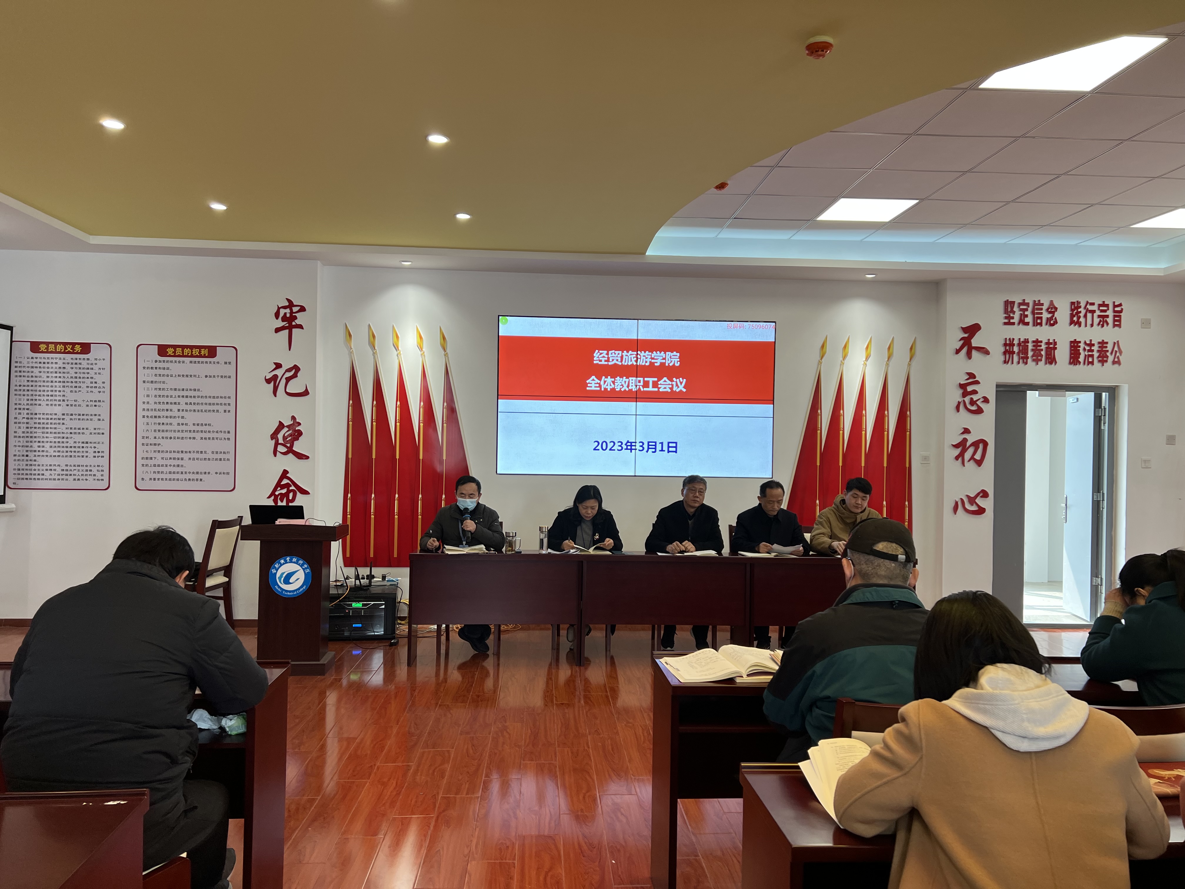 3月1日下午,世界杯体育官方网站在党性体验馆召开全体教职工大会暨政治理论学习会议。学院党政、全体教职工参加会议,会议由副院长陈继林主持。