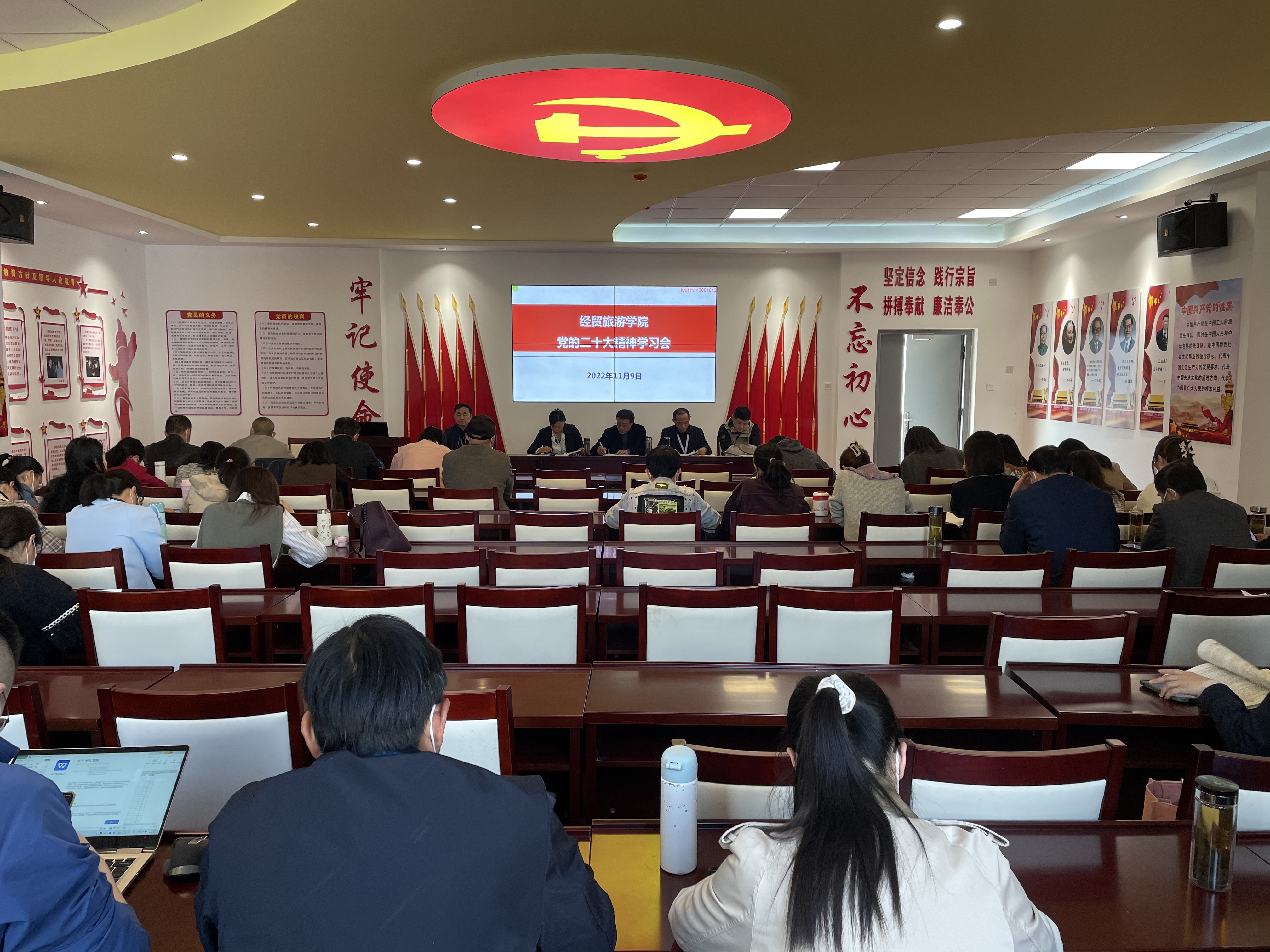 2022年11月9日下午,世界杯体育官方网站(以下简称“学院”)在党性体验馆召开党的二十大精神学习会。学院全体教职工参加会议,会议由副院长陈继林主持。