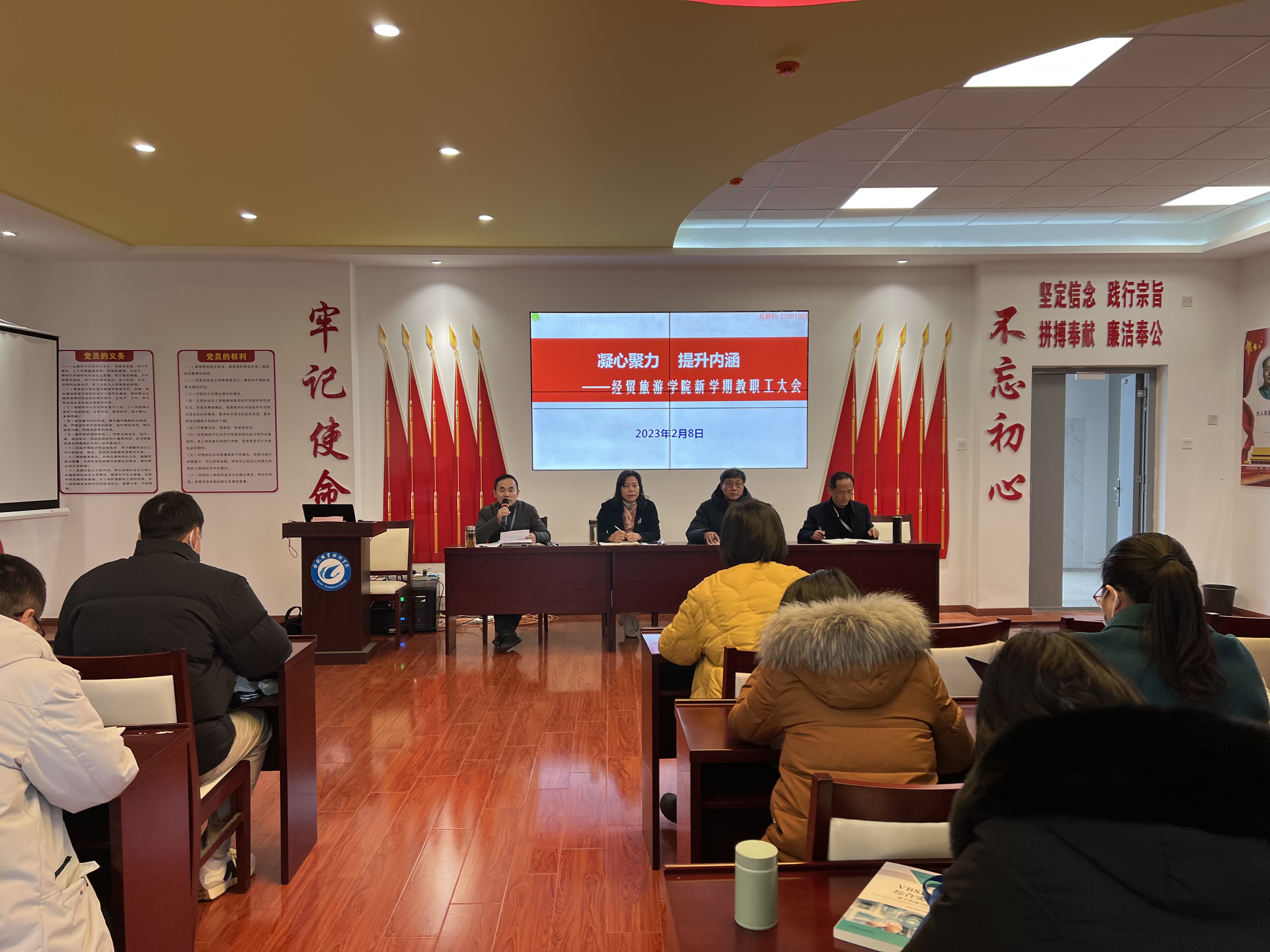 为推动新学期工作有序、高效开展,2月8日下午,世界杯体育官方网站在党性体验馆召开了以“凝心聚力、提升内涵”为主题的教职工大会,学院党政和全体教职工参会,会议由副院长陈继林主持。