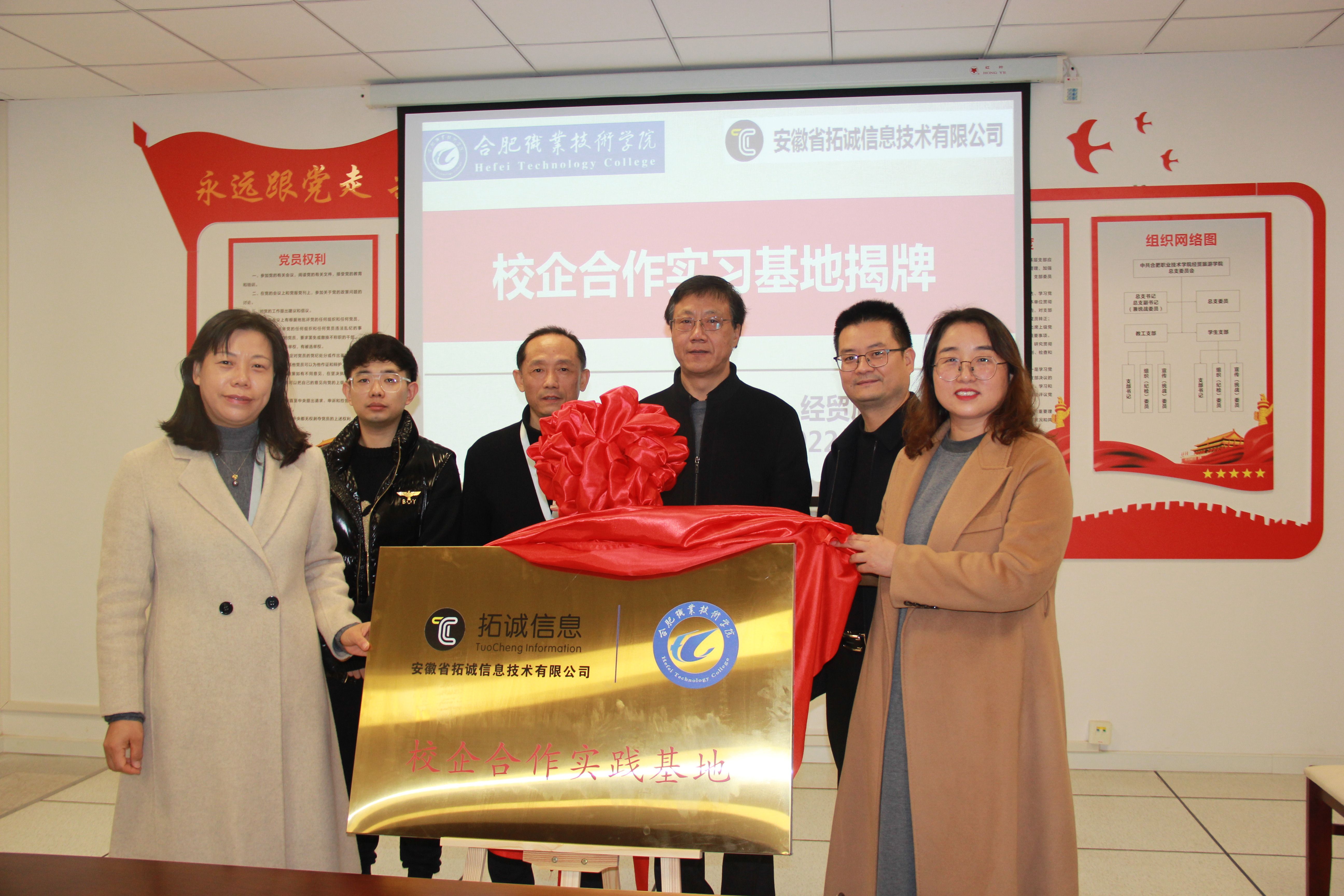 为了进一步深化校企合作协同育人,2022年11月18日上午,世界杯体育官方网站(以下简称“学院”)与安徽拓诚信息技术有限公司举行校企合作实践基地揭牌仪式,学院党政领导以及企业主要领导参加会议。