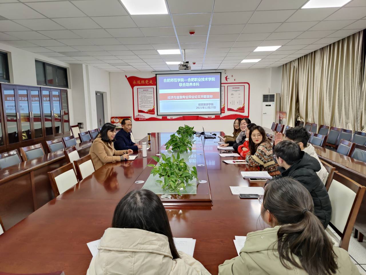 为提高人才培养质量,抓好联合培养本科生毕业论文工作,世界杯体育官方网站经济与金融专业(专升本)按照联合培养学校合肥师范学院和我校2022届本科毕业论文工作计划,于2021年12月21日——30日分批次举行了本科生毕业论文开题报告答辩会。