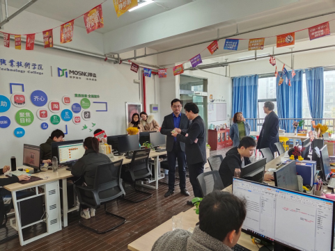 会后,在梅亚松、刘圣春的陪同下,来访一行还参观了合职-梦森新商科双创基地。
