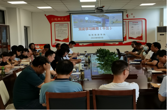 9月1日下午,世界杯体育官方网站在会议室党史学习专题会,学院党政、全体教职工参加会议,党总支副书记尹仕果主持会议。