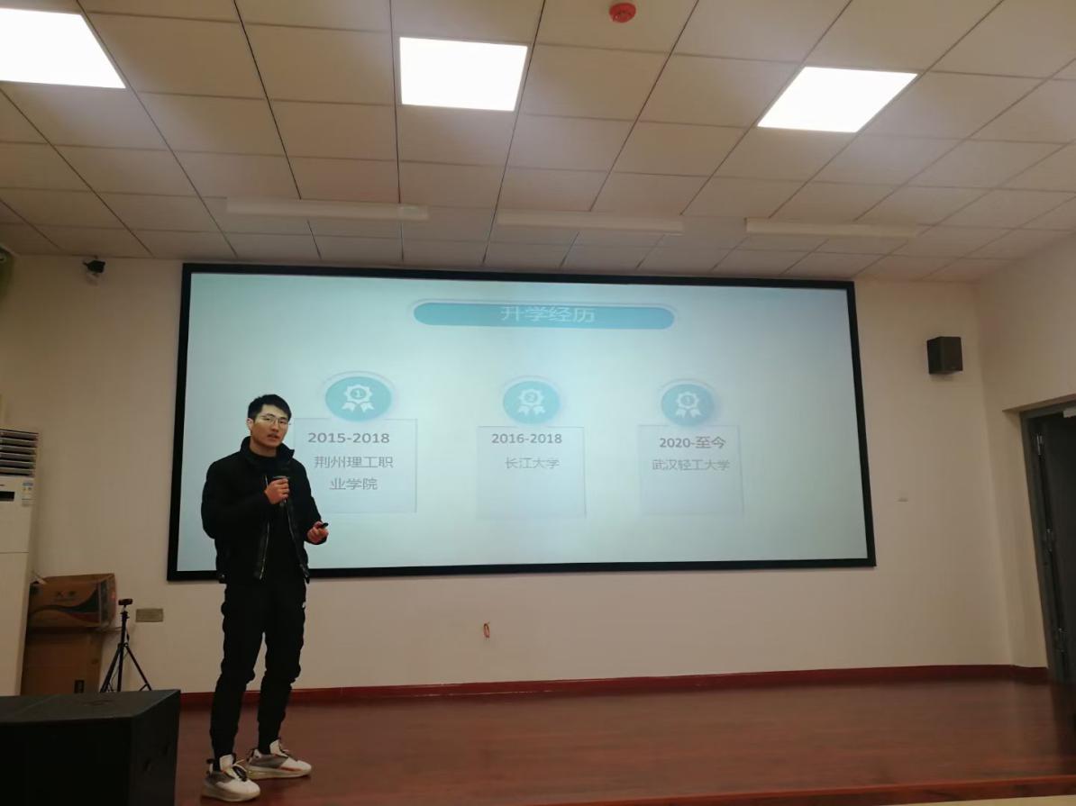 12月25日下午,一场别开生面的“专科生逆袭研究生”学习报告会在世界杯体育官方网站实验楼四楼“环幕导游实训室”举行。本次活动邀请武汉轻工大学研究生蒲海博同学作报告。活动由我院20级旅游管理专业1、2班承办。郑承辉老师带领全院同学线上、线下听取了报告。