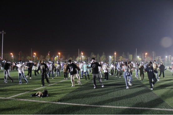 世界杯体育官方网站辅导员老师、学生会率先行动起来,在通过学院微信公众号、班级群广泛发动的基础上,4月6日晚,学院专兼职辅导员和部分学生会干部、街舞社团成员走上操场,戴好口罩,拉开间隔旗帜,以一首《Rolling Rolling》开场。青春的律动、欢快的节奏、激情的舞步声瞬间点燃了了整个操场的热情。《酒醉的蝴蝶》、《最炫民族风》、《小苹果......随着一首首舞,操场的同学们越聚越多,加入舞蹈的人也越来越多。有世界杯体育官方网站的,也有信息工程与传媒学院的,还有机电工程学院的;有学生,有老师,还有食堂阿姨,大家要把疫情带来的些许紧张和压抑随舞动的旋律抛入夜空