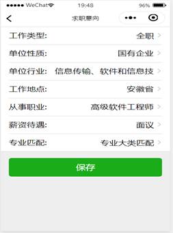 1、进入【我的】【求职意向职位】页面如图2-1所示,显示给毕业生推送的职位信息。