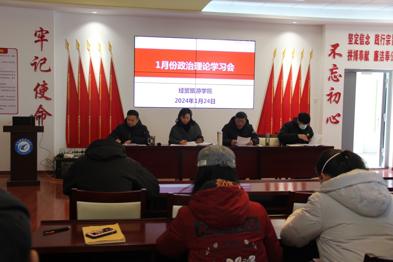 2024年1月24日下午,世界杯体育官方网站在党性体验馆召开1月份政治理论学习会暨学期工作总结会。学院党政、全体教职工参加会议,会议由副院长陈继林主持。