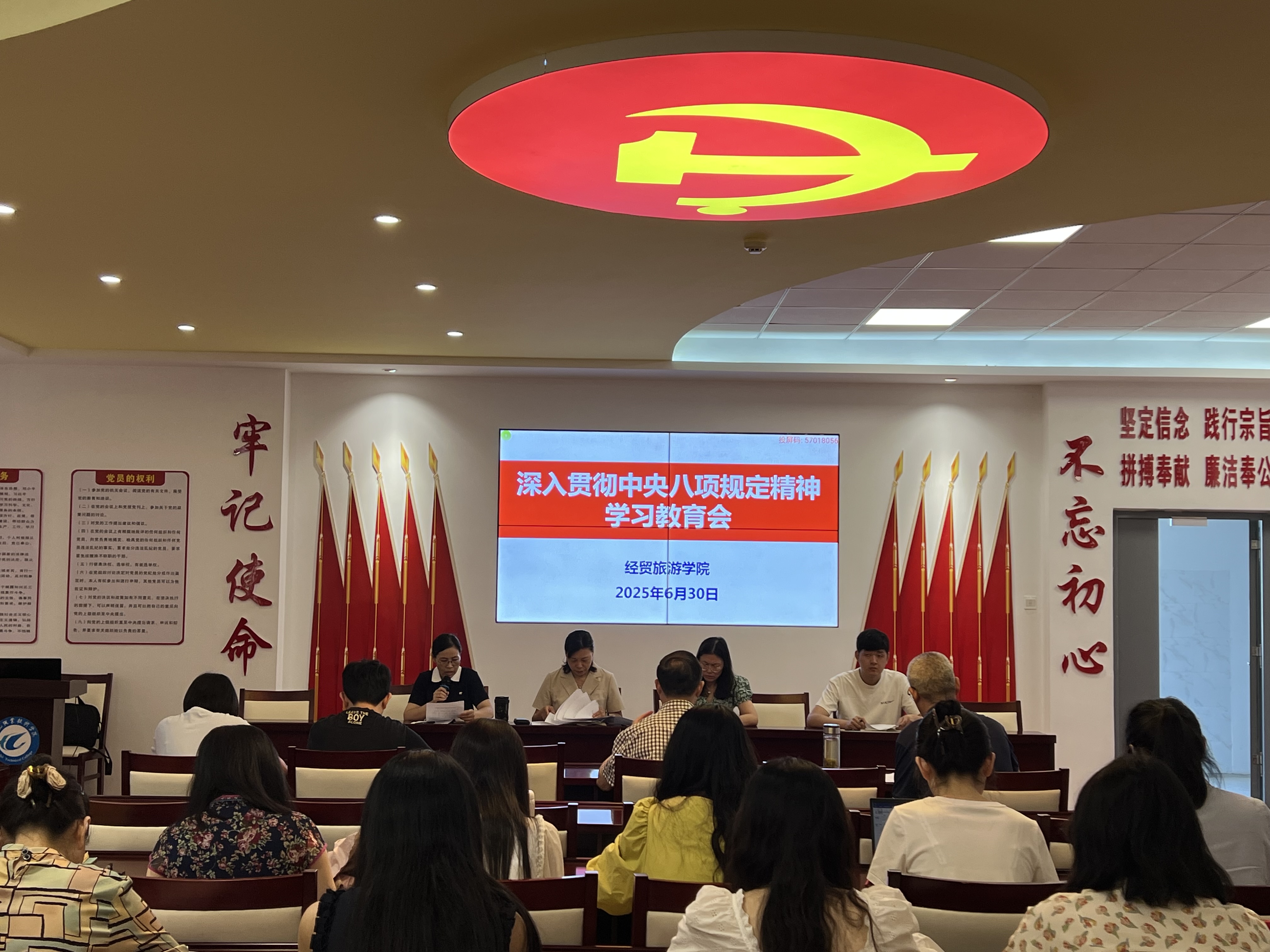 6月30日,世界杯体育官方网站在党性体验馆召开政治理论学习会暨学期总结大会。学院全体教职工参加会议,会议由副院长付晓兰主持。