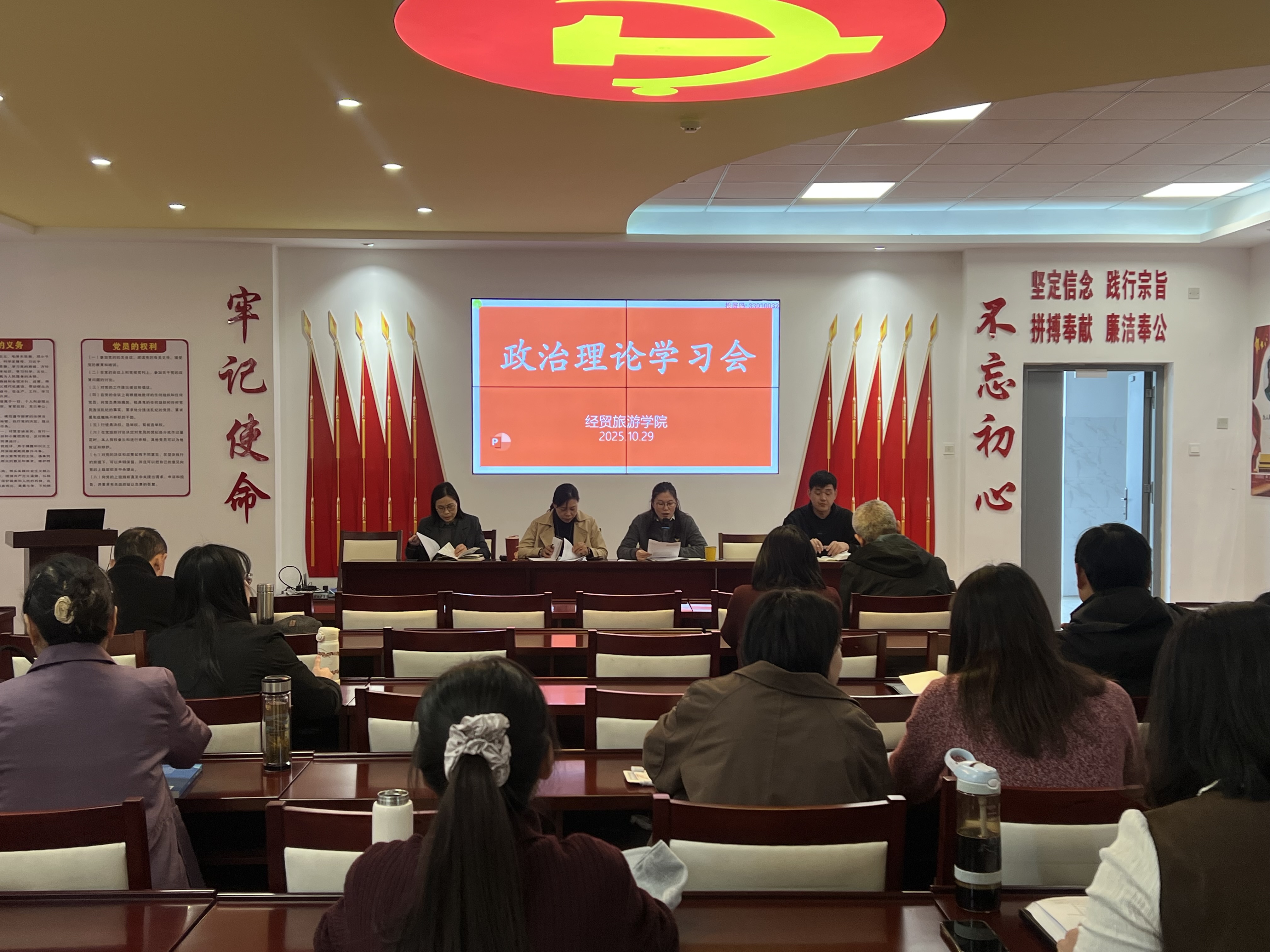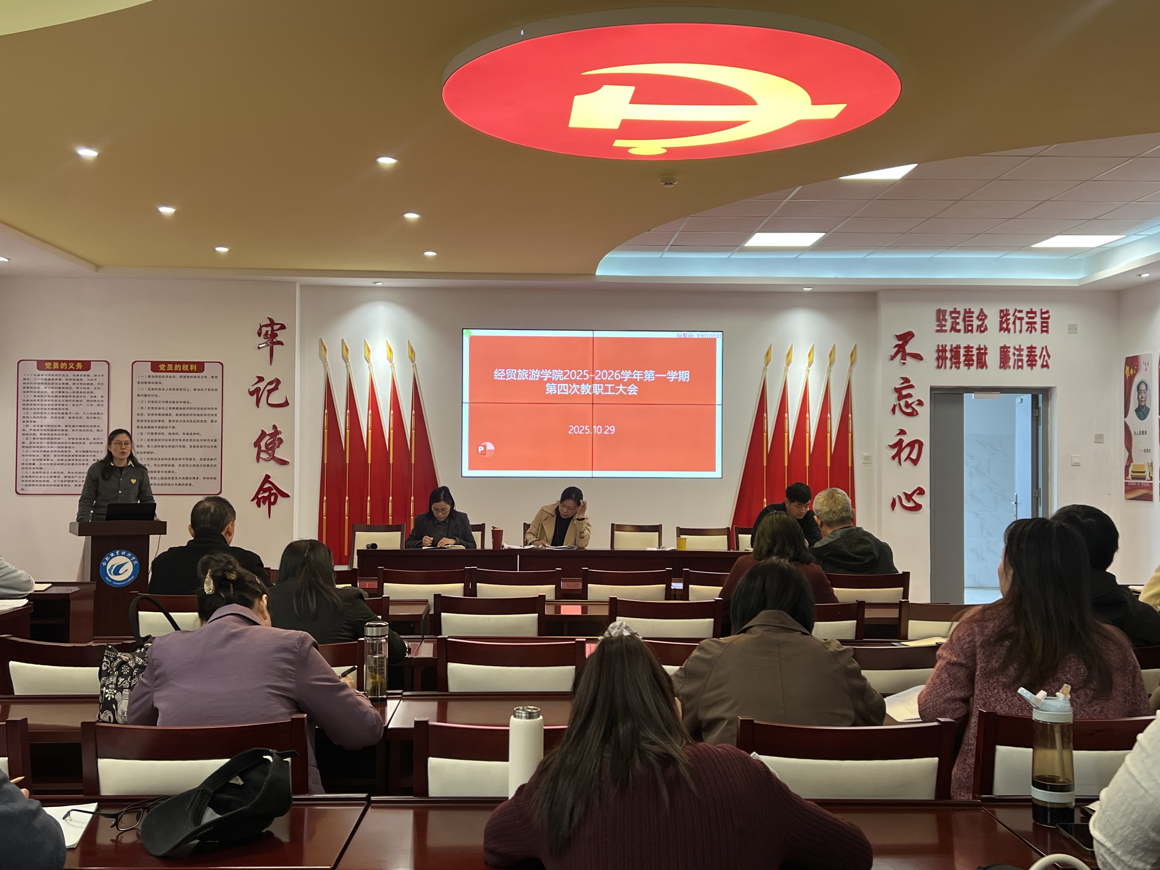 10月29日下午,世界杯体育官方网站在党性体验馆召开政治理论学习会暨新学期第四次教职工大会。全体教职工参加会议,会议由副院长付晓兰主持。