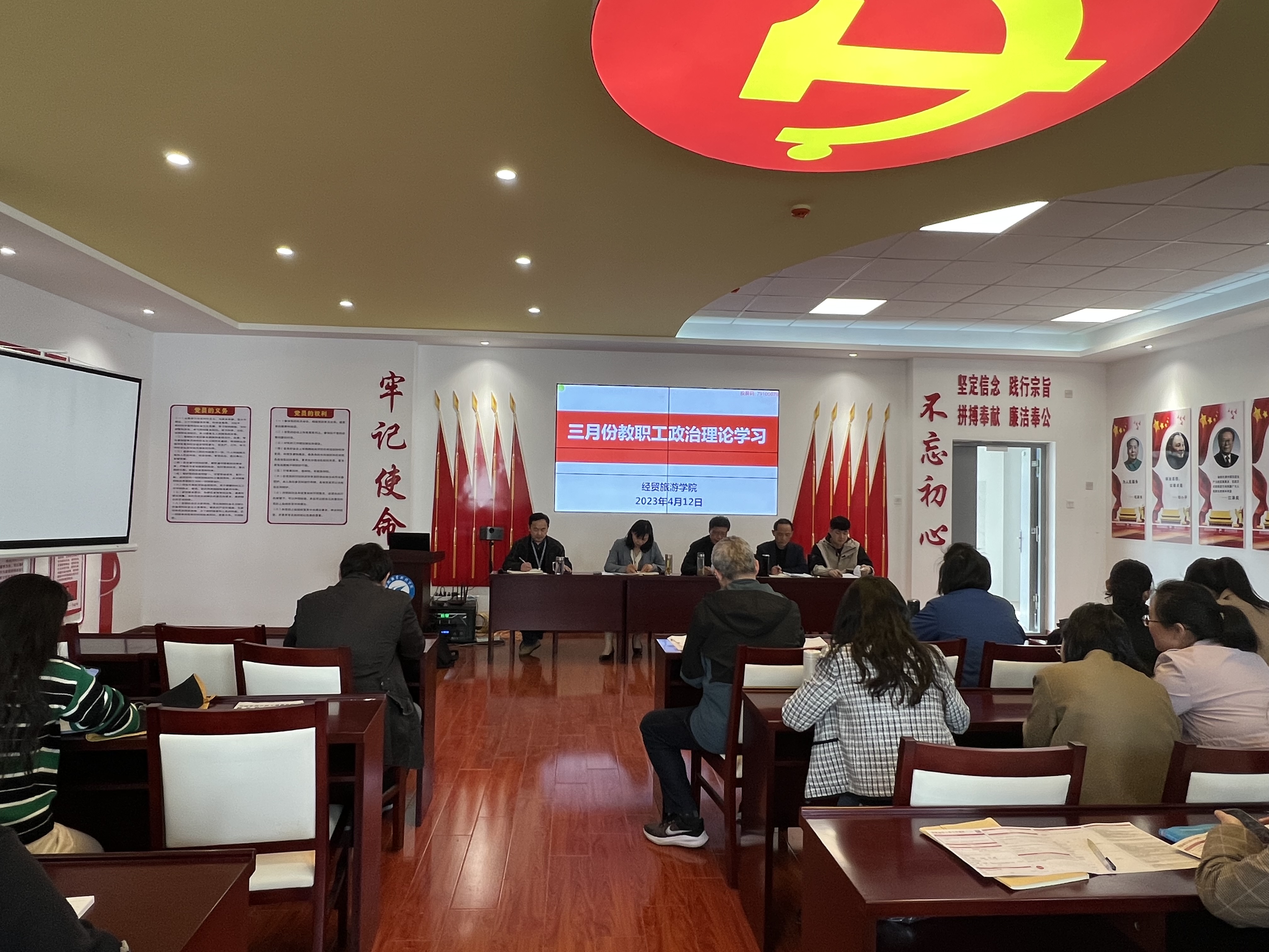 4月12日下午,世界杯体育官方网站在党性体验馆召开全体教职工政治理论学习会议。学院党政、全体教职工参加会议,会议由副院长陈继林主持。