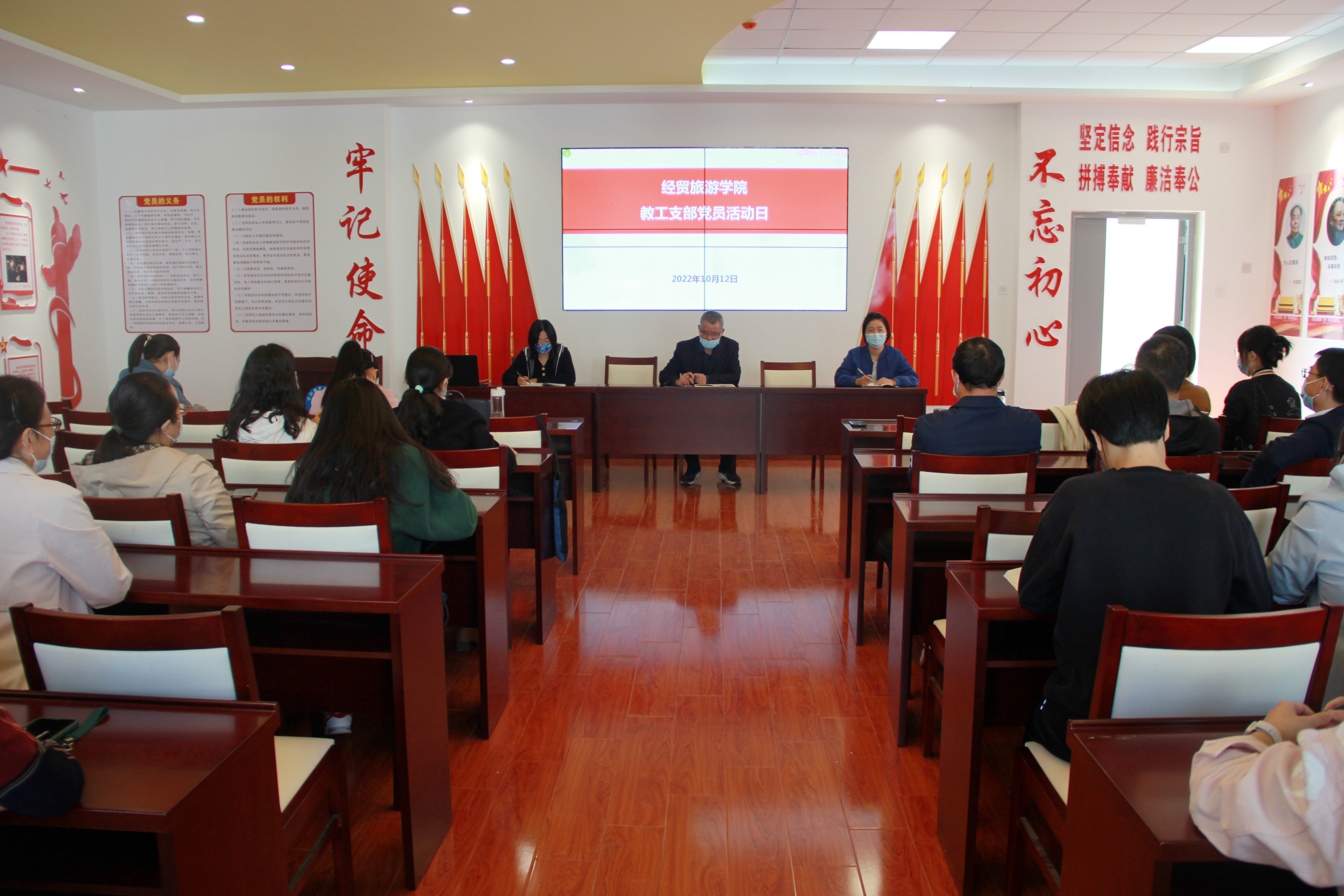 为贯彻落实习近平总书记重要讲话和批示指示精神,落实好学校3“十四五”规划重点任务,按照学校党委统一部署,10月12日下午,世界杯体育官方网站党总支分支部在学院党性体验馆和党员活动室开展“十月份党员活动日”主题学习。教工支部和学生支部全体党员参加学习,教工支部会议由高荣明主持,学生支部会议由王明明主持。