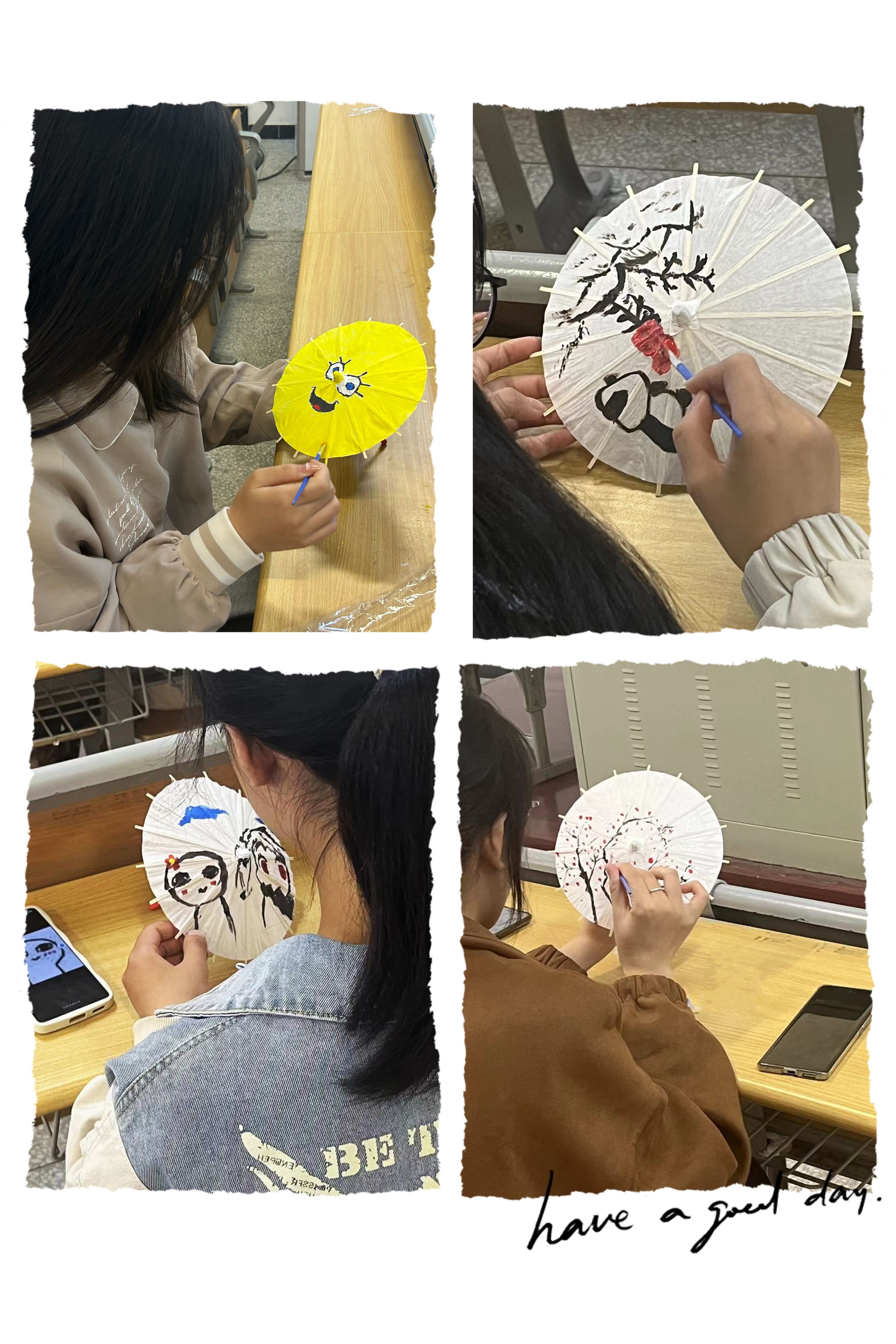 如果说春天与风筝缱绻相随,那么秋天可以说是与油纸伞相“绘”的最好时节!10月22日下午,世界杯体育官方网站雅韵汉学社于北教学楼101教室举办手绘油纸伞的活动,带领当代大学生感受中国传统工艺之美,做好非遗传承。