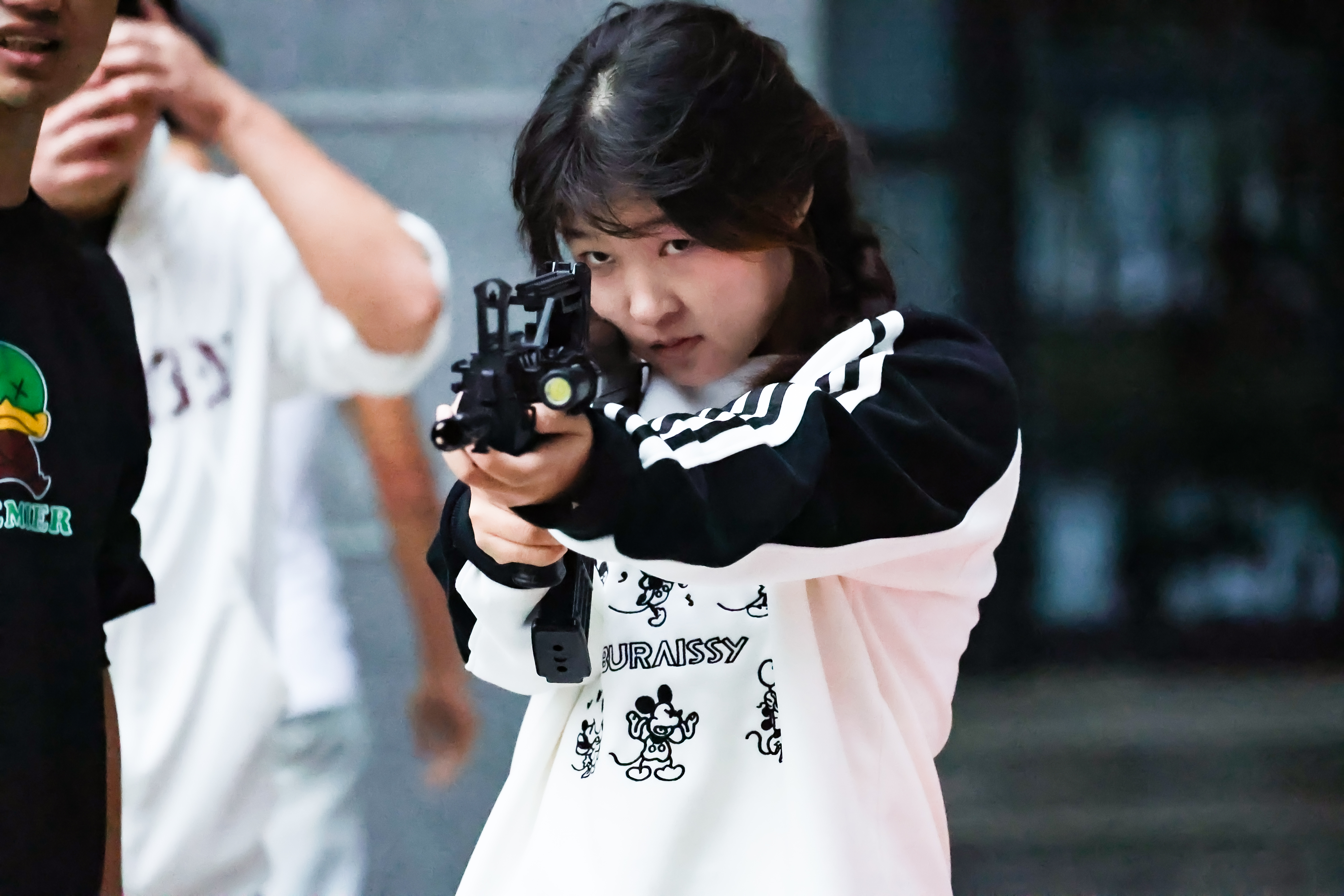 “据枪、瞄准、射击… …!”在体验环节,社团成员和指导老师向同学们讲解了射击的要领和安全规范,并指导同学们进行模拟练习。