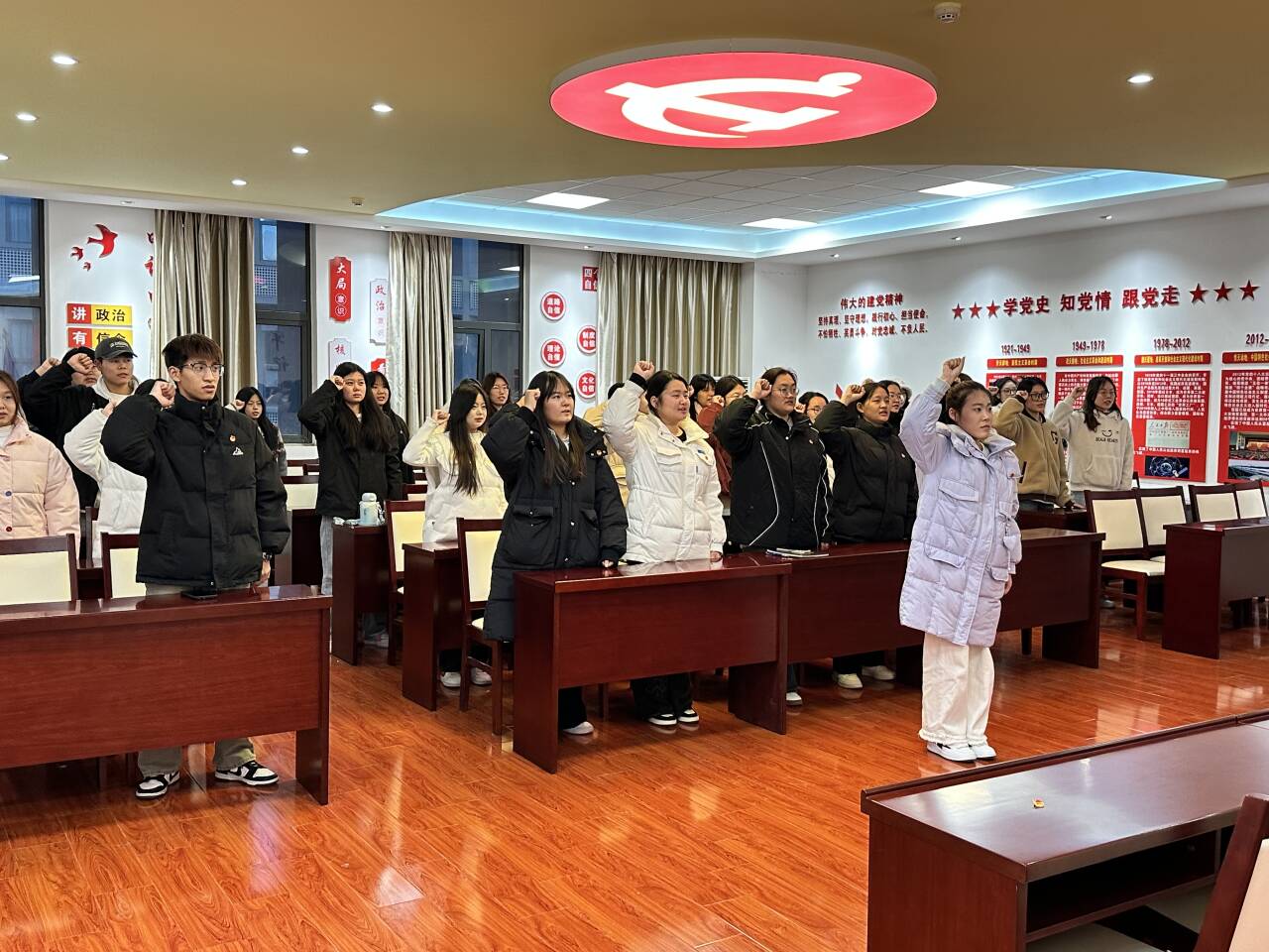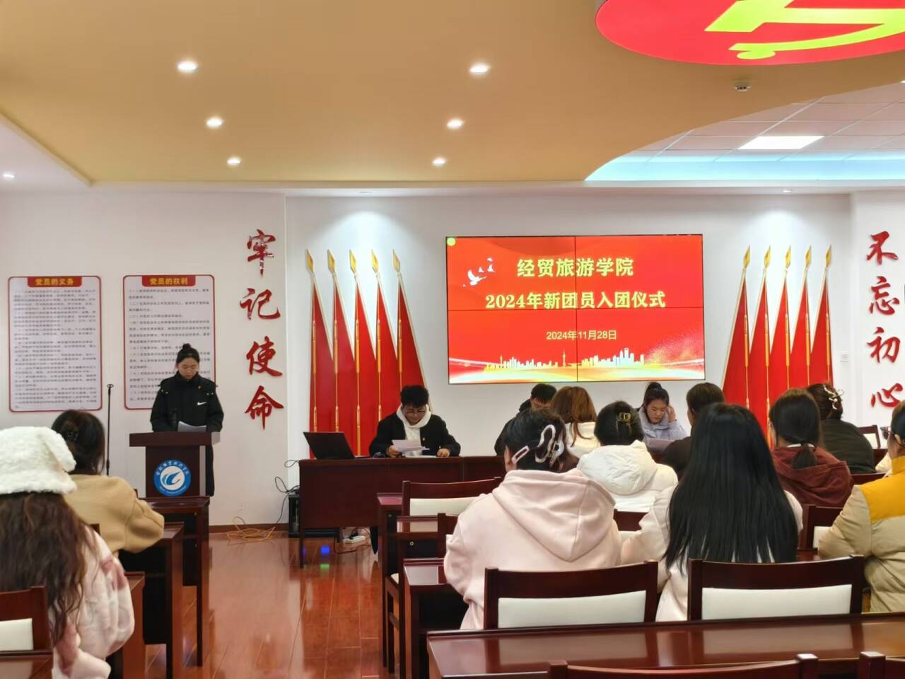 为坚定青年学生理想信念,引领团员青年永远跟党走,世界杯体育官方网站团总支于2024年11月29日下午在经贸楼党性体验馆为新团员举行了入团仪式,此次仪式由杨昇同学主持。