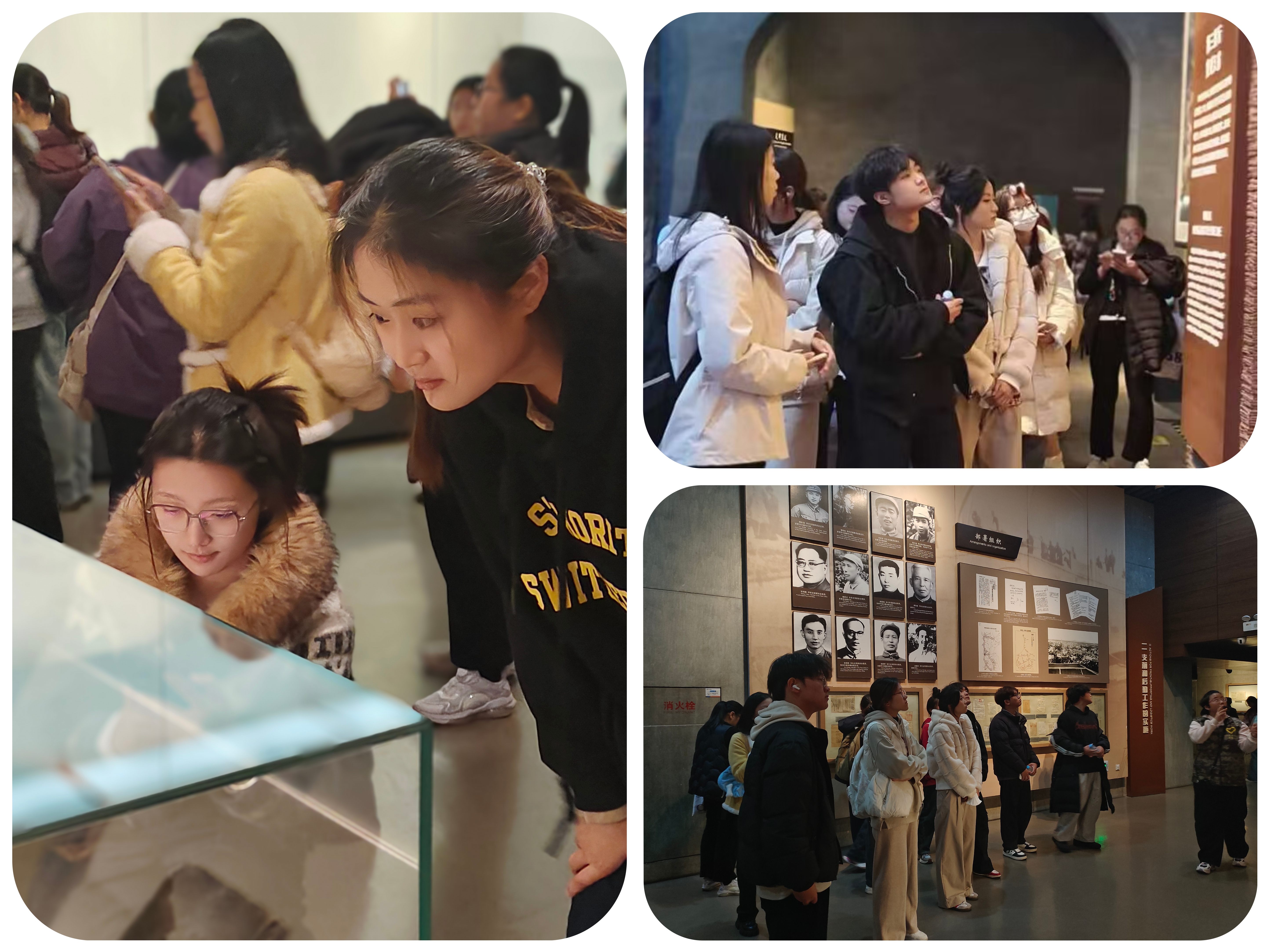知行合一 实践转化 11月23日,学生会培训班学员赴渡江战役纪念馆、安徽省名人馆参观。在渡江战役纪念馆,珍贵文物、详实史料与全景画卷生动再现了军民同心、浴血奋战的壮阔历程,学员们驻足凝视、认真聆听,深切感悟革命先辈的家国担当;走进安徽省名人馆,从古代先贤到近代志士,从文化巨匠到行业先锋,安徽名人的爱国情怀与奋斗精神深深感染着每一位学员。