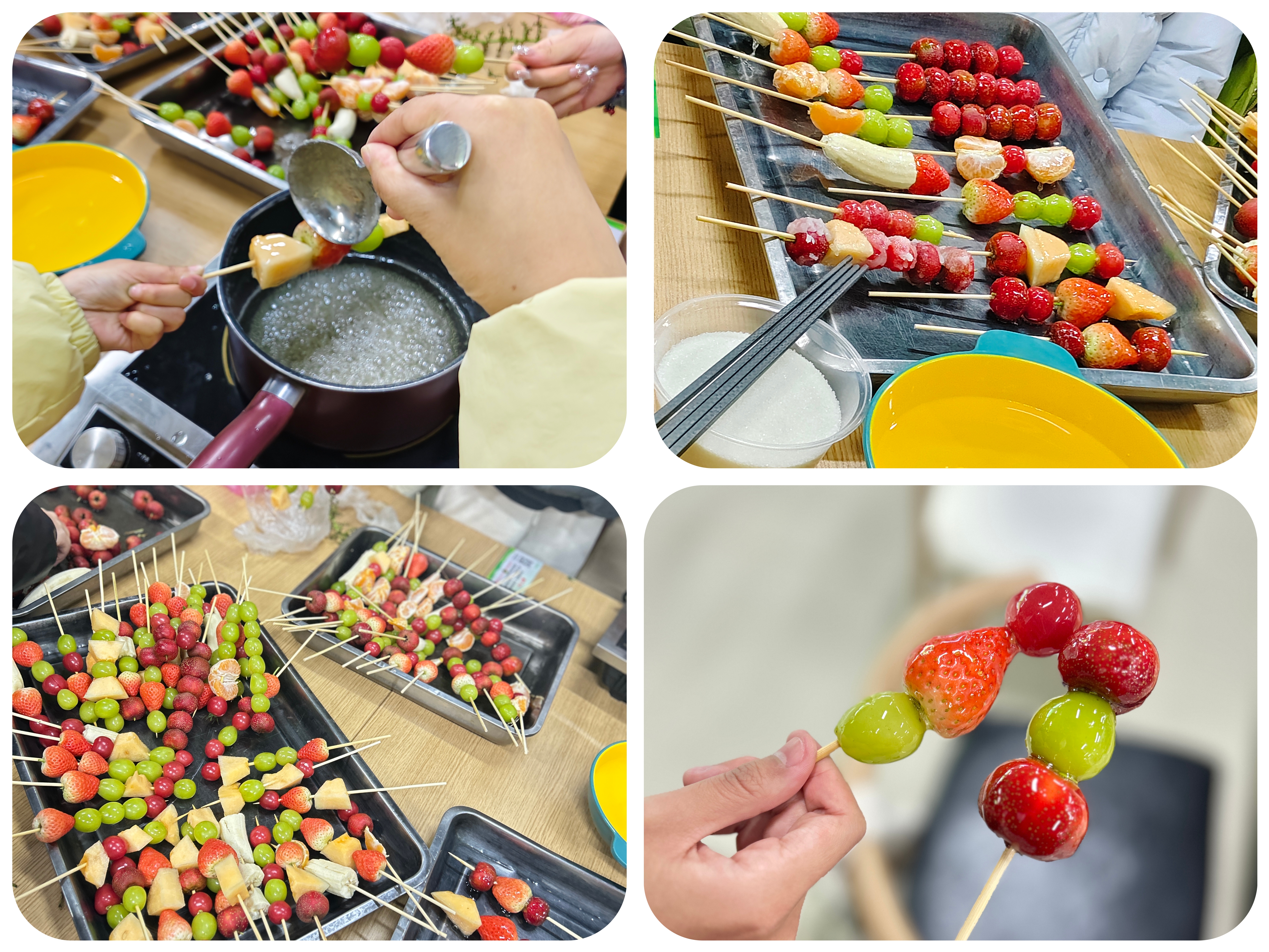 活动现场热闹非凡,处处洋溢着欢声笑语,同学们热情高涨、踊跃参与,沉浸式体验冬至民俗的独特魅力。“饺香暖冬”环节中,我院联合食堂开展手工包饺子、DIY糖葫芦活动。案板前,同学们分工协作,揉面、擀皮、包馅一气呵成,形态各异的饺子摆满托盘;熬糖、串果、裹糖衣的操作台前,大家相互讨教技巧,酸甜酥脆的糖葫芦很快新鲜出炉。现包现煮的饺子热气腾腾,咬上一口暖意直达心底;酸甜可口的糖葫芦甜入舌尖,让同学们在美食中品味冬日幸福。