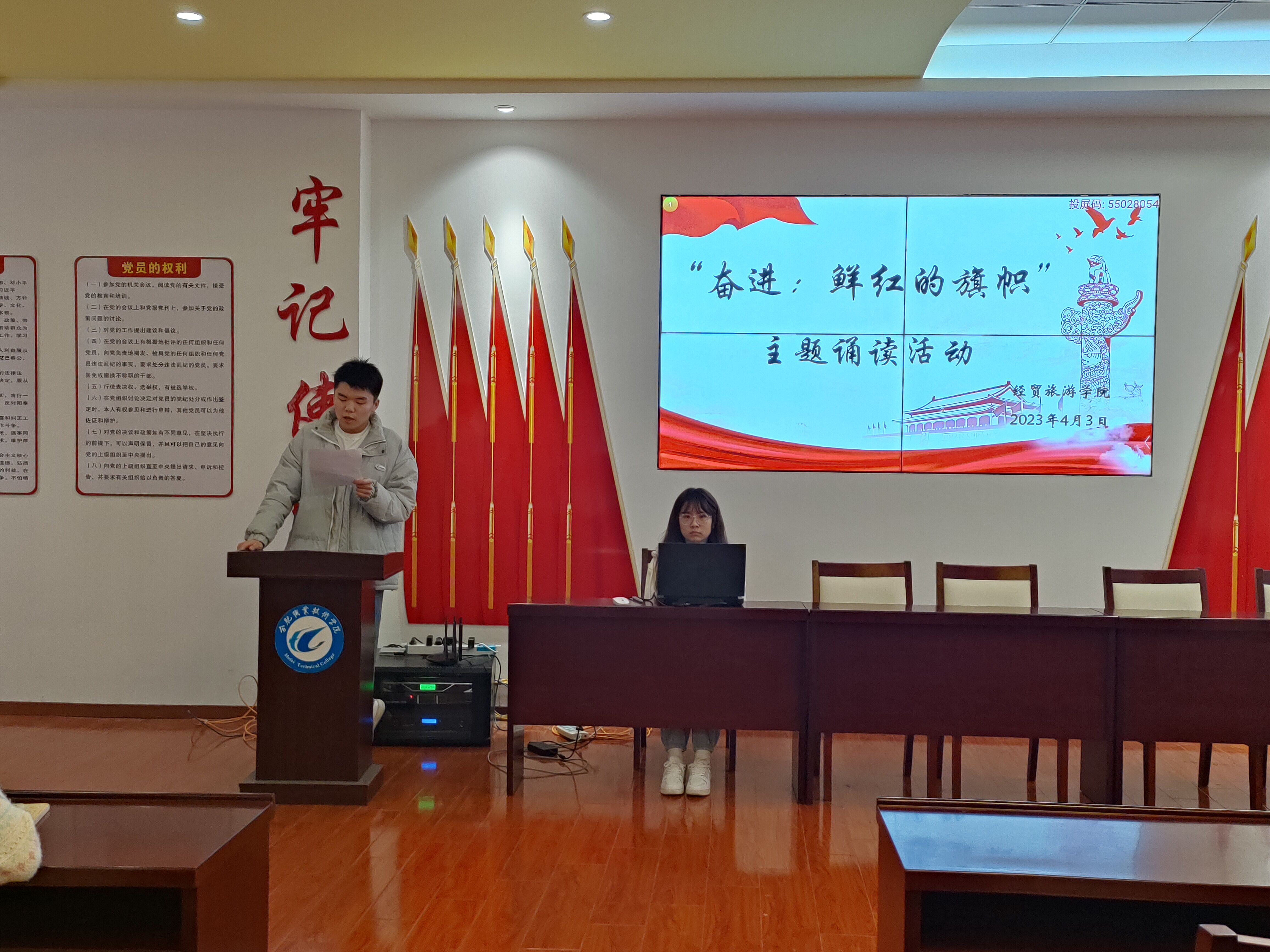 重温经典忆初心,牢记使命再前行。世界杯体育官方网站于4月3日在经贸楼党性体验馆开展“奋进:鲜红的旗帜”主题朗诵活动。