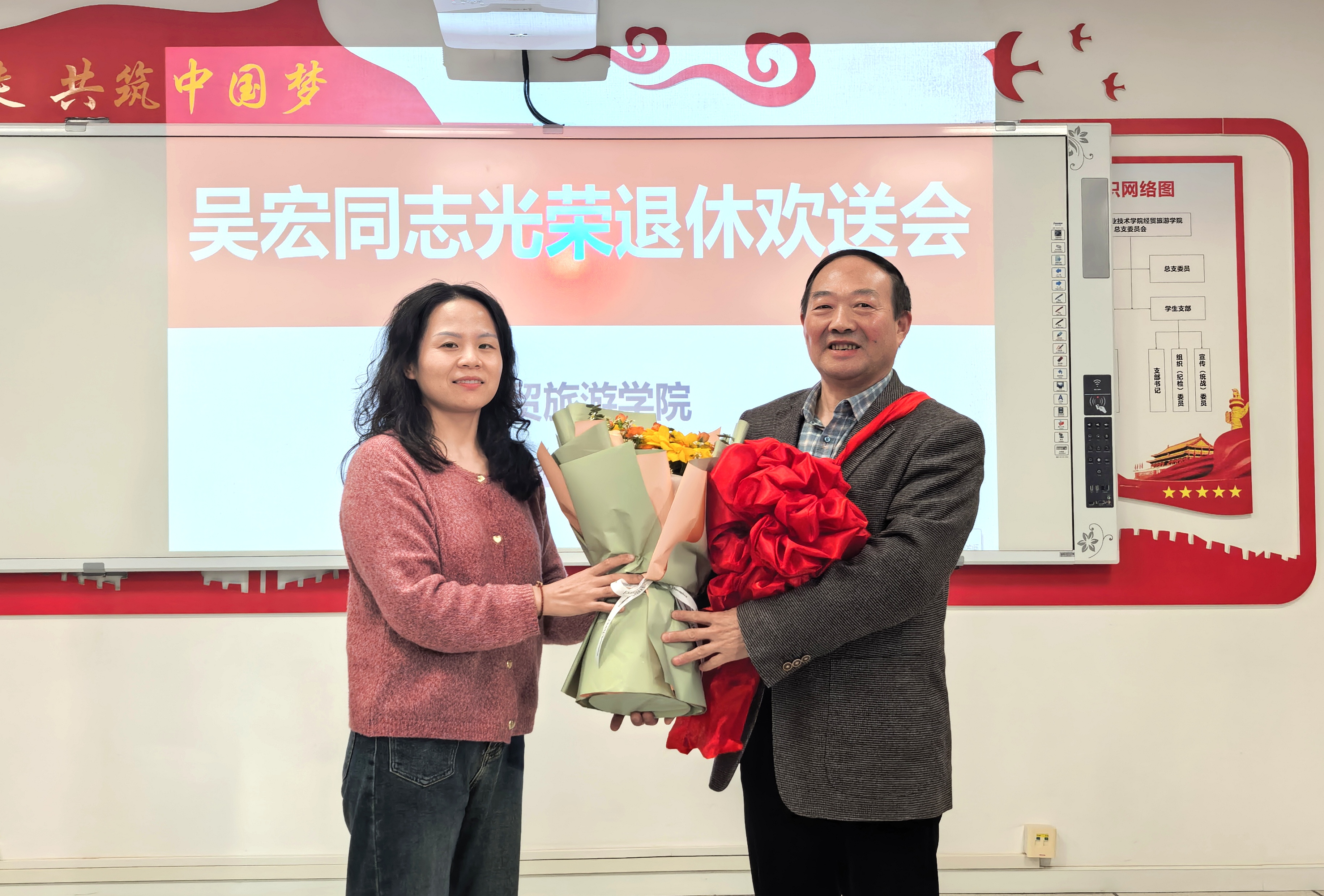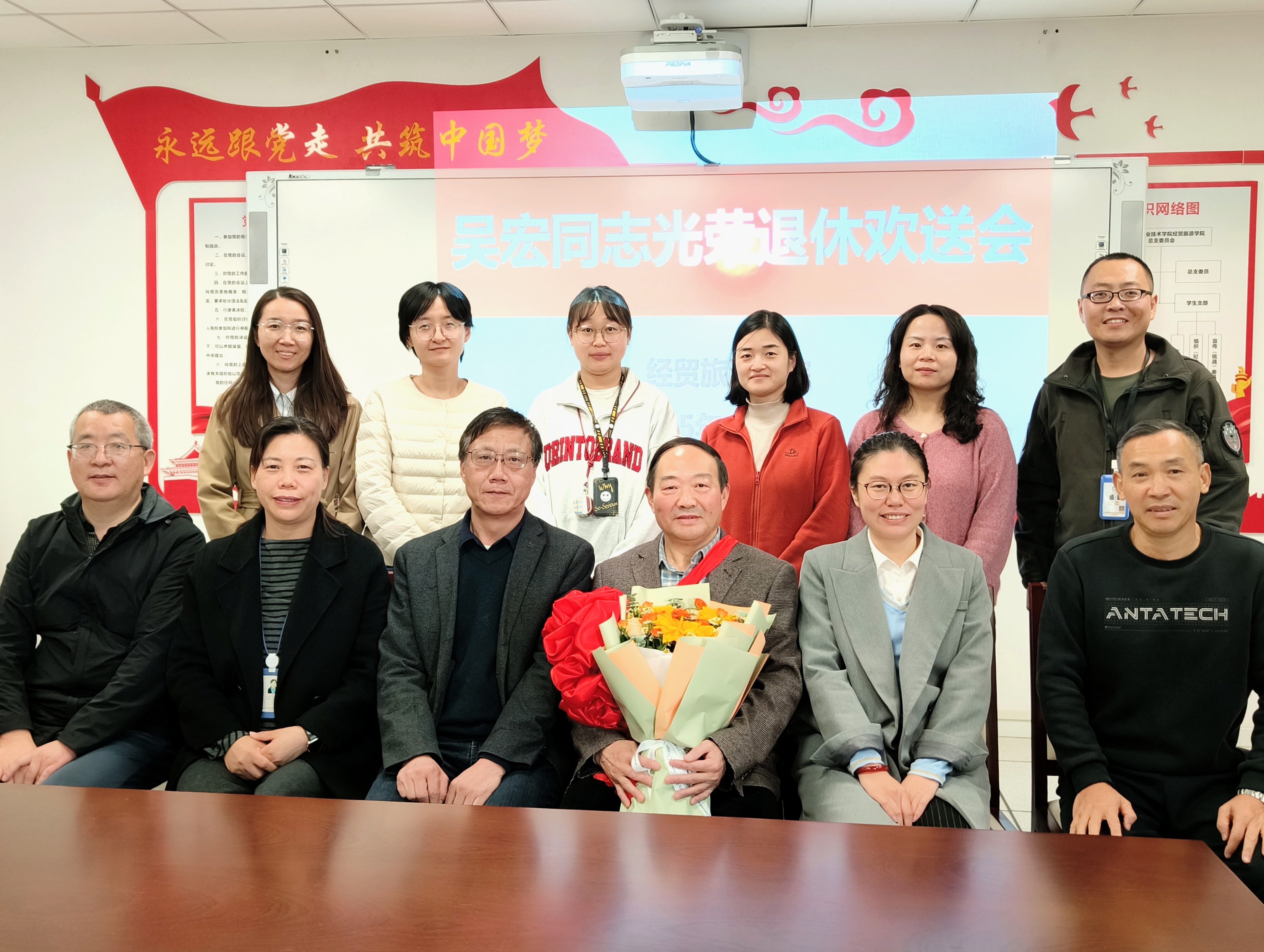 11月5日,世界杯体育官方网站在三楼会议室举办吴宏老师光荣退休欢送会。学院党政、部分老教师、青年教师代表以及学校财务处张其悦、胡蓉等教师参会,党总支副书记赵倩倩主持仪式。