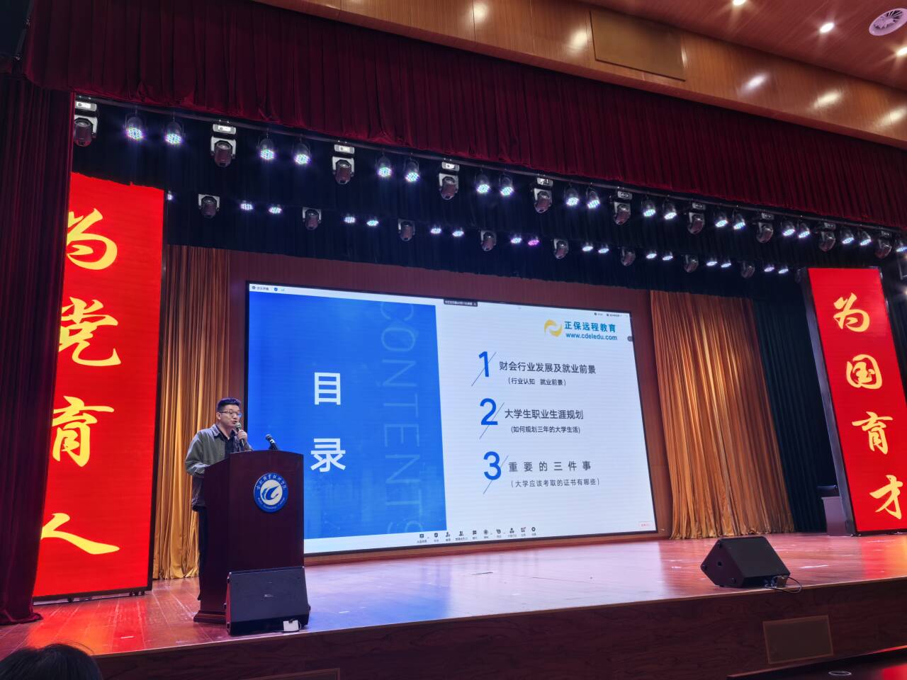 为帮助2024级新生了解自身专业、明确个人目标、科学规划大学生活,10月10日下午,世界杯体育官方网站在大学生活动中心二楼报告厅举办了以“数字经济背景下的数智财务人才需求与培养”为主题的讲座。本次讲座邀请了北京东大正保科技有限公司的资深职业生涯规划专家张雨老师主讲,世界杯体育官方网站副院长付晓兰、会计教研室全体教师以及大数据与会计、大数据与审计专业2024级新生参加了本次活动。