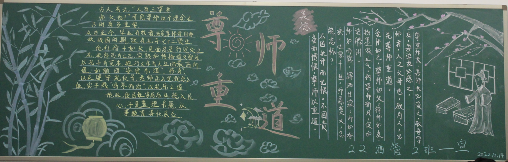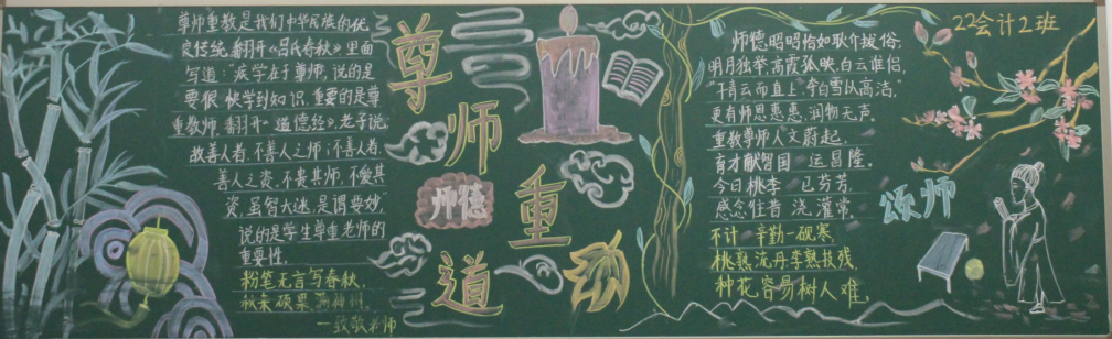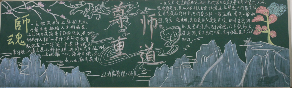 为了加强师德师风建设,增强全体教师教书育人、为人师表的责任感和使命感,积极开展师德师风宣传教育活动,努力营造良好的师德师风舆论环境和氛围。世界杯体育官方网站团总支根据学校师德师风建设工作安排,于10月中旬在22级团支部中组织开展“尊师重道”宣传教育板报评比活动。