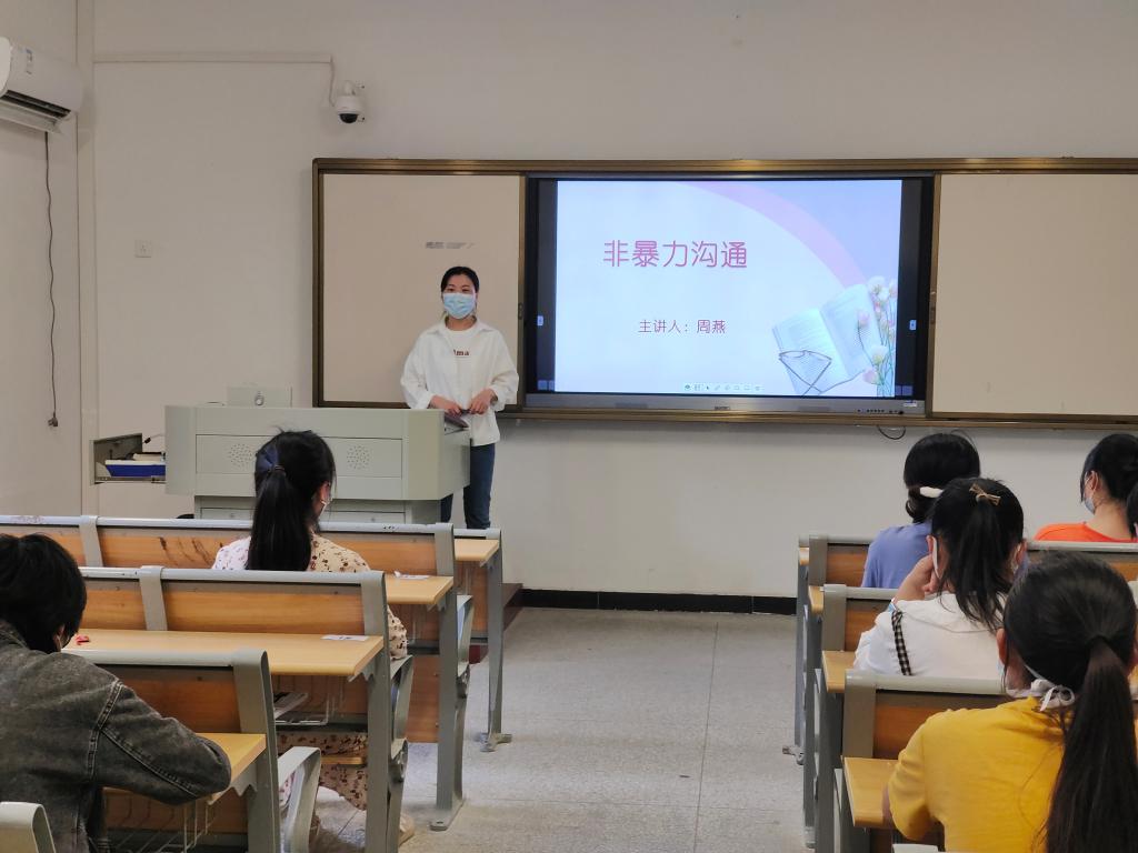 5月18日下午,学院周燕老师面向全院心理委员开展《非暴力沟通》的主题心理讲座。讲座主要讲解了暴力沟通带来的问题,重点介绍了非暴力沟通的四要素:观察、感受、需要和请求,非暴力沟通是一种成熟的表达方式。