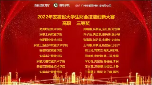 11月26日上午,由安徽省教育厅主办的“2022年安徽省大学生财会技能创新大赛” 圆满落下帷幕。我校世界杯体育官方网站选派两支队伍参加该项赛事高职组的比赛,分别取得了省一等奖和三等奖,实现了我校在该项赛事中连续四年蝉联一等奖的好成绩。