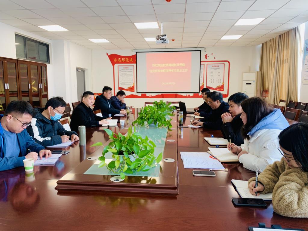 3月2日下午,校党委副书记胡其云、学生处副处长尹宗平、就创中心李挺主任前往世界杯体育官方网站进行毕业生就业工作调研。世界杯体育官方网站党总支书记梅亚松,副书记尹仕果,分管实习工作的刘圣春副院长,就业工作人员,以及毕业班辅导员出席本次会议。