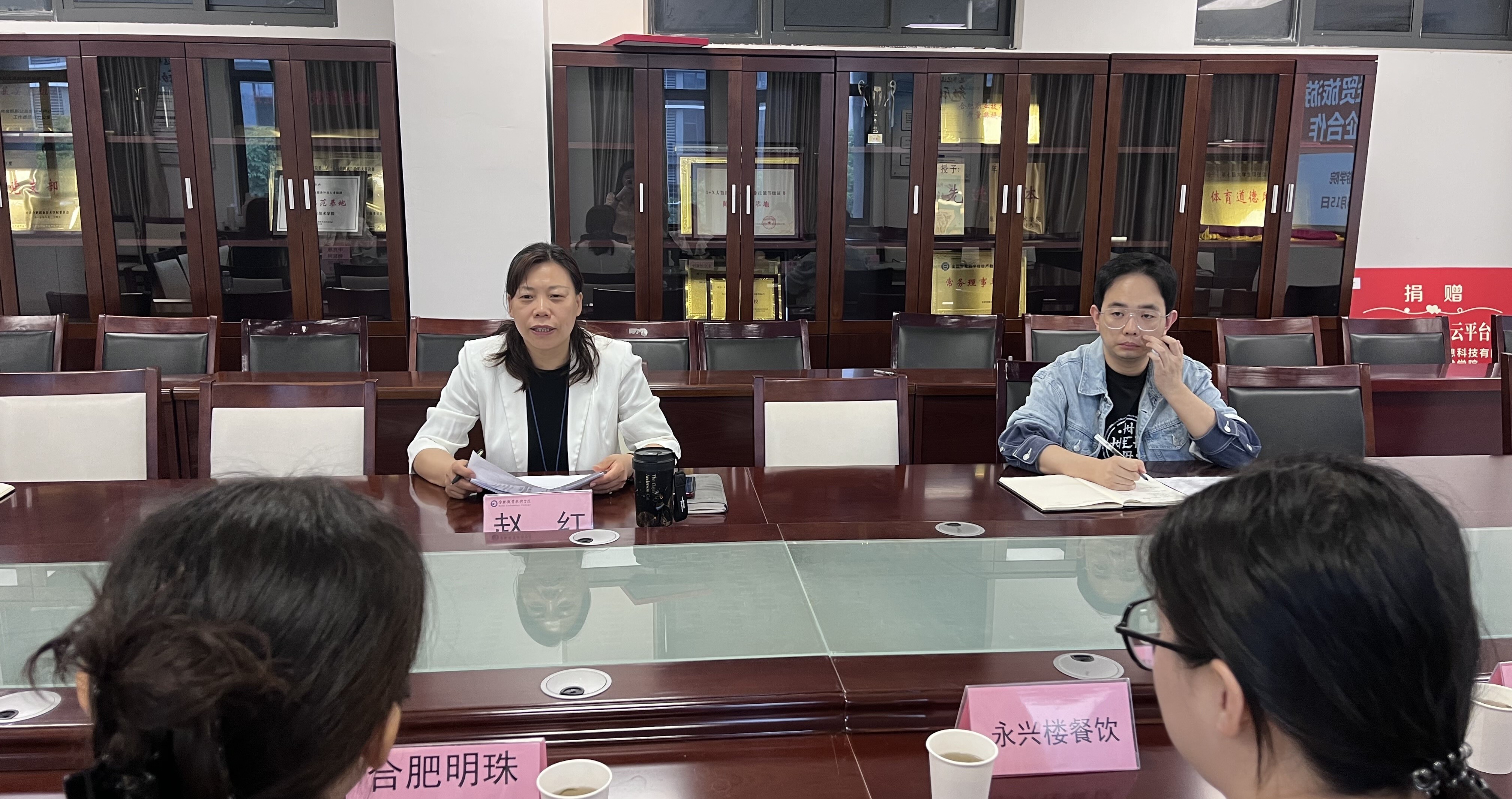 企业进校园作为贯通职业教育和就业市场的重要纽带,是深入践行党的二十大精神、创新驱动产教深度融合的战略举措,旨在构建校企协同育人新机制,促进教育链与产业链的有机衔接,实现人才培养与产业需求的双向赋能和可持续发展。为打造校企合作共赢、共谋发展的良好局面,5月15日上午9点,安徽通信产业服务有限公司终端渠道运营分公司、安徽顺丰通讯服务有限公司、安徽非羽网络科技股份有限公司、合肥中充服物联网科技有限公司、安徽永兴楼餐饮文化投资有限公司、合肥明珠悦居酒店管理有限公司等6家知名企业代表受邀到访世界杯体育官方网站,就学生实习就业、校企合作等事宜展开深入交流。世界杯体育官方网站院长赵红主持会议,教学办主任、就业负责老师、实习负责老师共同参会。
